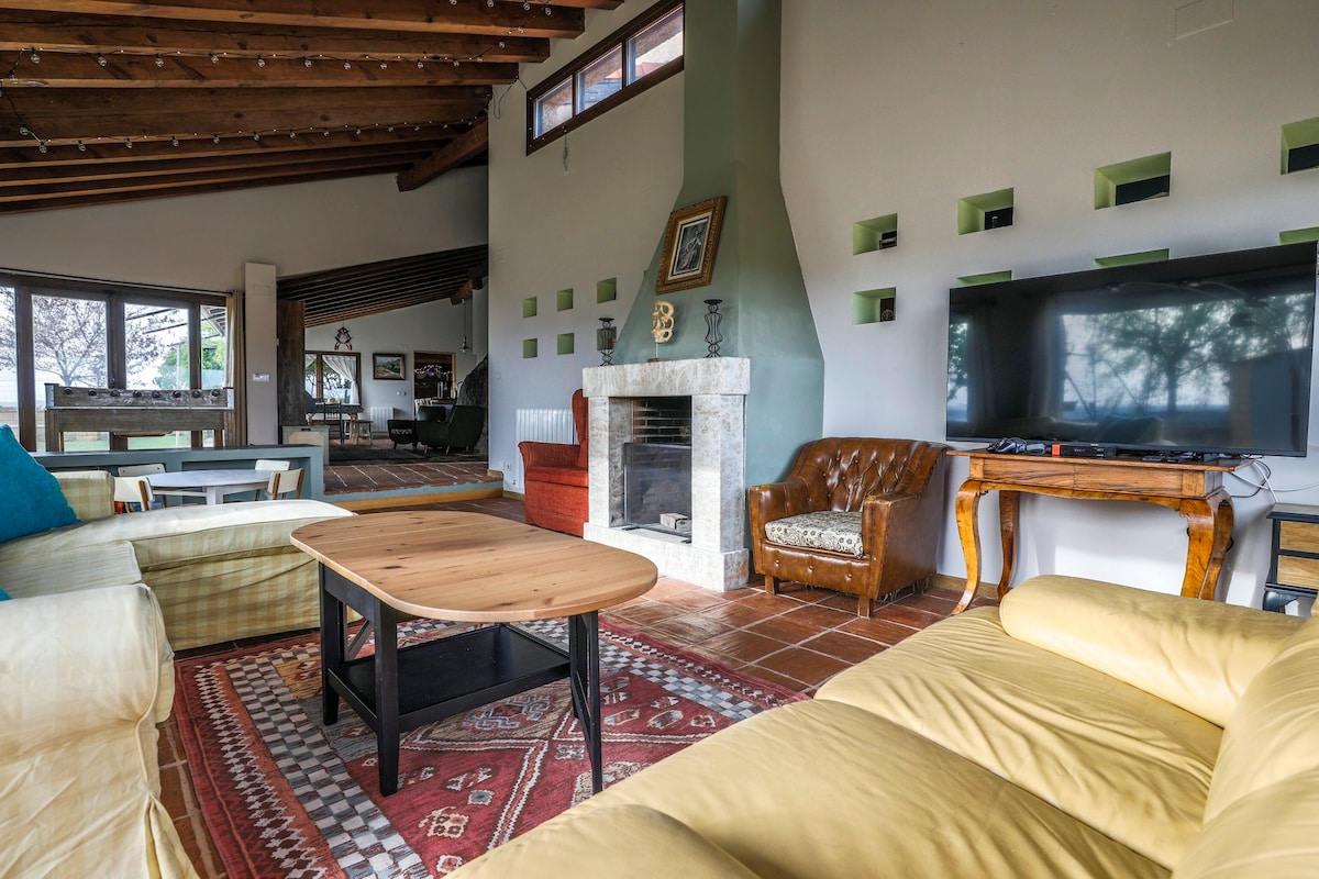 Više od doma, prostor stvoren za uživanje. Udoban, prostran i sa najboljim elementima za uživanje u društvu: kamin, roštilj, bazen, karaoke, društvene igre, kamin, biblioteka, dvogled, bicikli itd. Ažurirane turističke informacije, super opremljena kuhinja i Wi-Fi. Potpuno privatni smeštaj smešten na imanju od 80.000 kvadratnih metara. Nema komšija. Da ne ometam. Da se ne uznemirava
