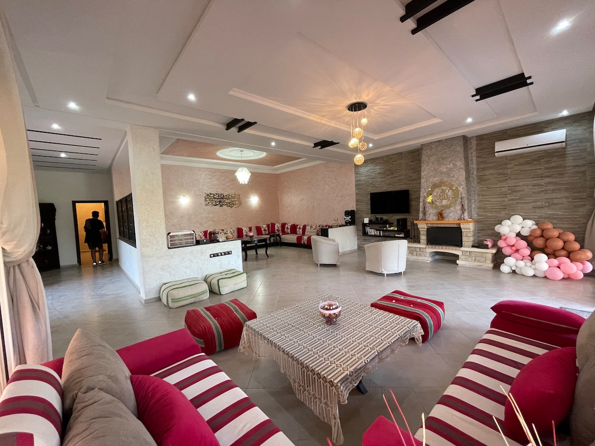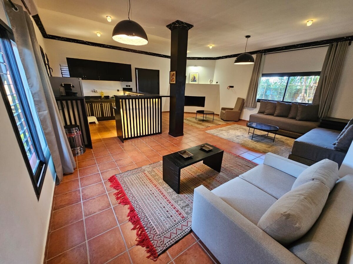 Séjournez dans une grande ferme confortable de 2 hectares près de Rabat. Spacieuse et conviviale, la villa offre 3 chambres, de vastes salons lumineux aux grandes baies vitrées et une cuisine équipée. 🌿 Profitez de la piscine privée et d’un accès direct au fleuve pour vos pique-niques et balades en plein air. ❄️ Climatisation centrale et par chambre pour plus de confort. Idéal pour familles ou amis en quête de détente, de nature et d’authenticité à la campagne.