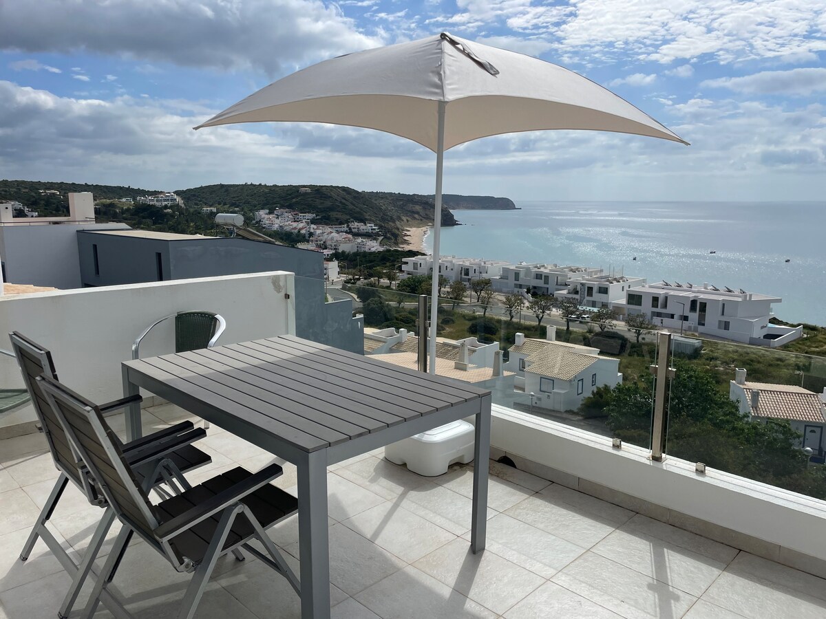 Prelep renoviran stan ispunjen svetlošću sa zadivljujućim pogledom na selo Burgau i svetlucavo more ispod njega. Ovaj stan se nalazi na najnevjerovatnijoj lokaciji za fantastičan odmor, 2 minuta hoda kroz lijepo selo Burgau do plaže ispod. Nalazi se u blizini nekih od sunčanih plaža i mjesta za surfovanje u Portugalu. Stan je nedavno renoviran i pretvoren u moderan,luksuzan prostor