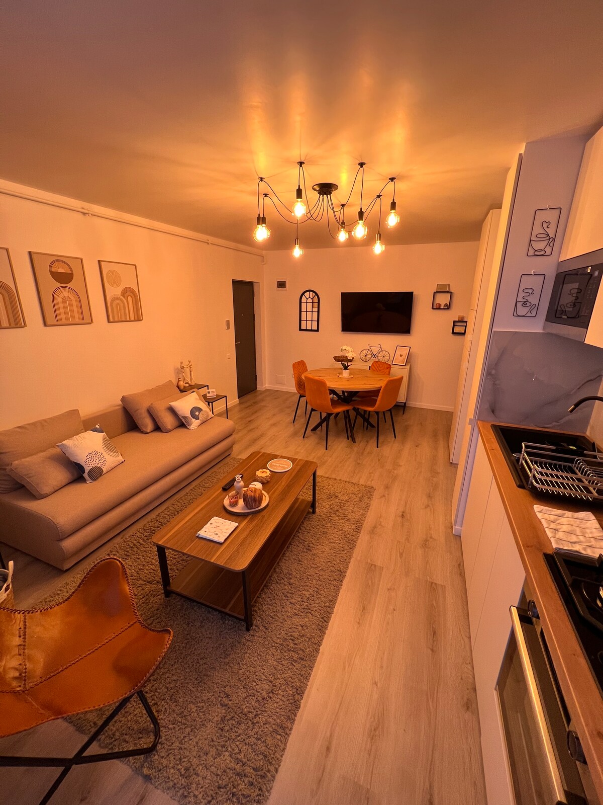 Udoban i opuštajući stan sa sjajnim pogledom. Smještaj ima minimalistički dizajn i elegantne detalje. Ima sve uređaje i uređaje koje očekujete u svom domu. Sa 5 minuta hoda do lokalnih prodavnica i 10 minuta do lokalne autobuske stanice . Nudimo besplatan parking na licu mesta. Takođe smo od klima-uređaja uz malu dodatnu naknadu .