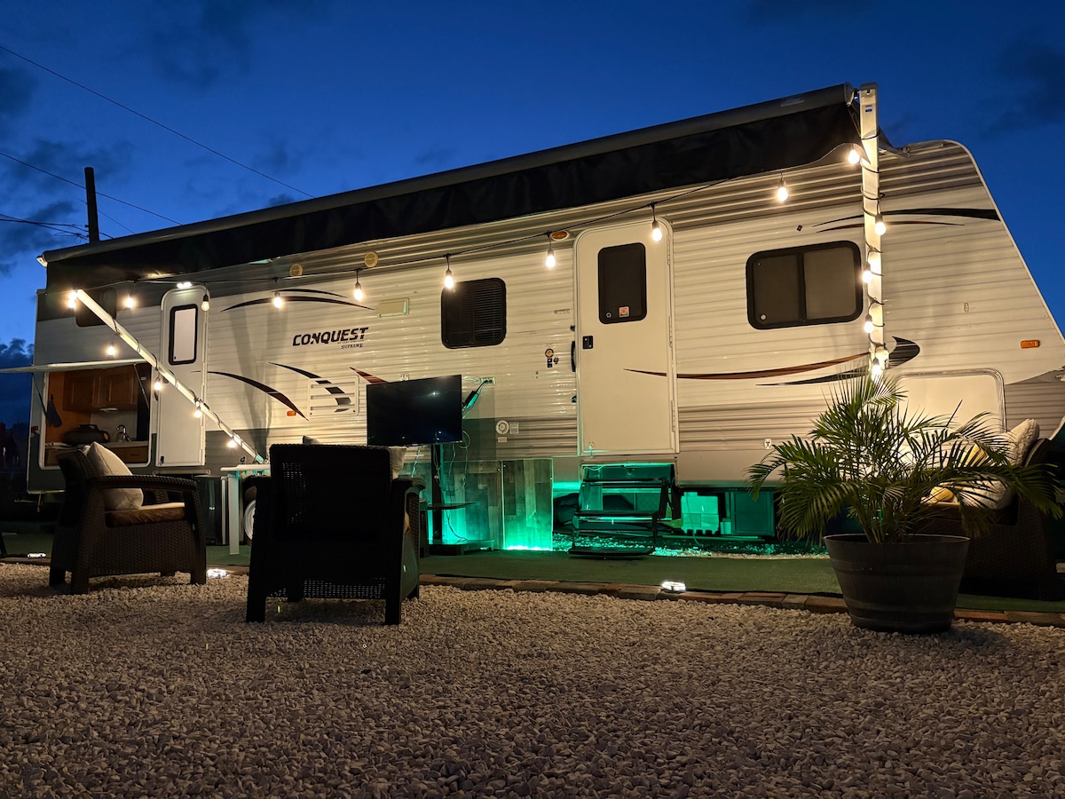 Dobro došli u La Gozadera RV, vaše savršeno utočište u blizini zadivljujućih plaža Salinas u Portoriku. Ovaj divni kamper je dizajniran da udobno primi goste, nudi udobnu spavaću sobu i kupatilo, idealno za romantičan odmor ili mali porodični odmor.