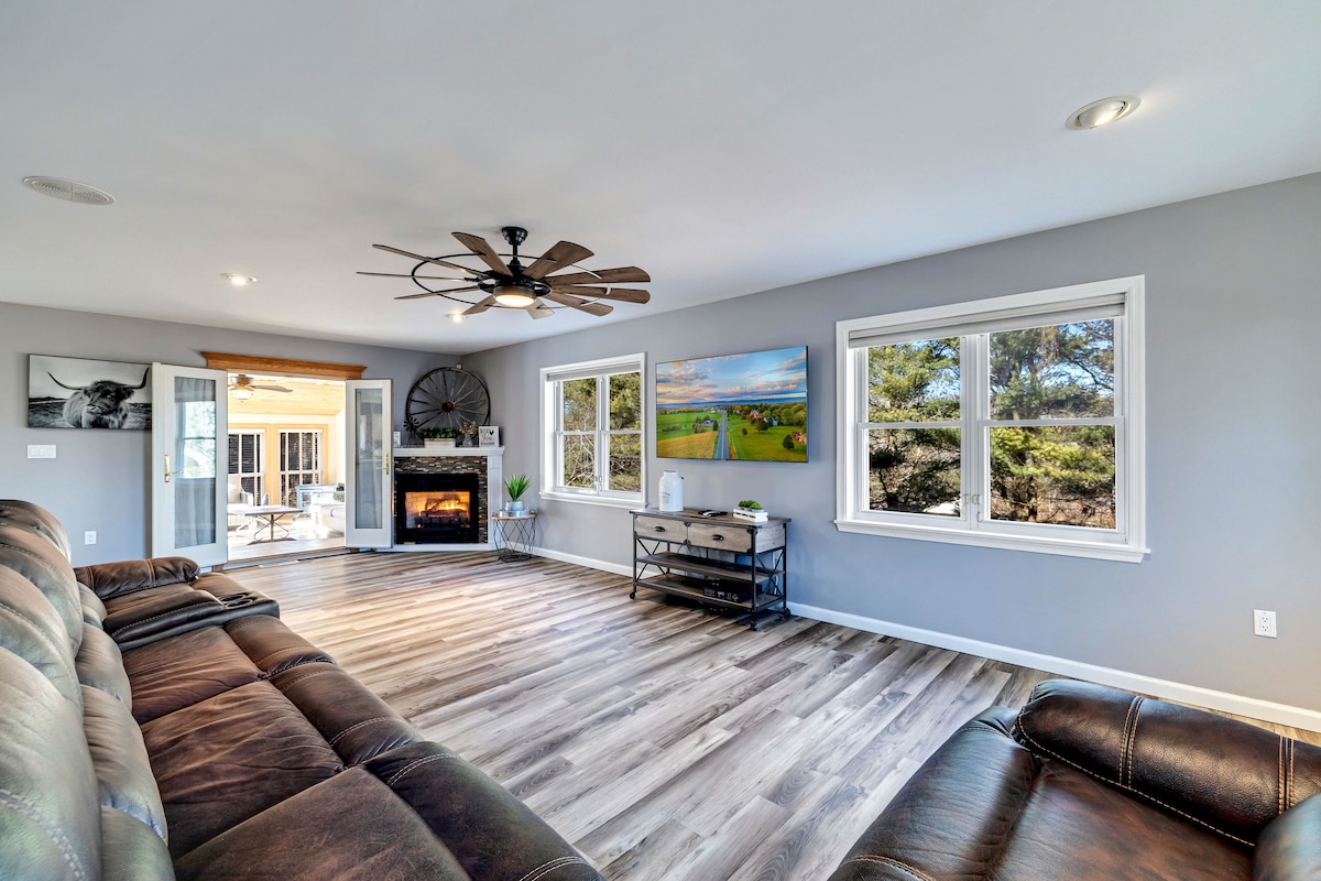 Dobro došli u našu jedinstvenu renoviranu konjušnicu na prostranom imanju od 51 hektara u blizini planine Kamelbek, kompletno sa privatnim potokom. Uživajte u koktelu u rustikalnom salonu, prostoru u kojem su nekada bili smješteni arapski konji i odmorite se u prilagođenoj sobi na sprat. Ovo utočište kombinuje luksuz sa rustikalnim šarmom, nudeći idealan prostor za planinarenje u prirodi. Uživajte u branju jabuka u jesen, skijanju zimi i ribolovu na potoku u toplijim mjesecima. U blizini Camelback, Great Wolf Lodge, vinarija, Kalaharija i još mnogo toga!