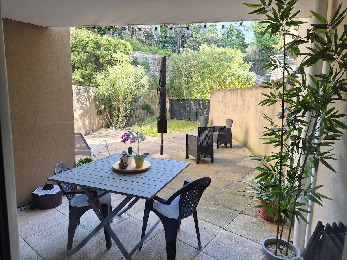 Idealno se nalazi 30 minuta od Eks-Avinjon-Marsej, dođite i uživajte u Provansi, u našem stanu od 105 m², potpuno opremljenom u prizemlju naše veoma mirne provansalske vile sa ekskluzivnim pristupom bašti i bazenu. Bazen je samo za vas (od maja do septembra). Posteljina/peškiri su obezbijeđeni Kutija za ključeve za ulazak. Čišćenje nije uključeno u cenu (inače 30.). Zabave i gosti su zabranjeni i danju i noću, Nema komercijalnih aktivnosti Nemojte pušiti u smještaju