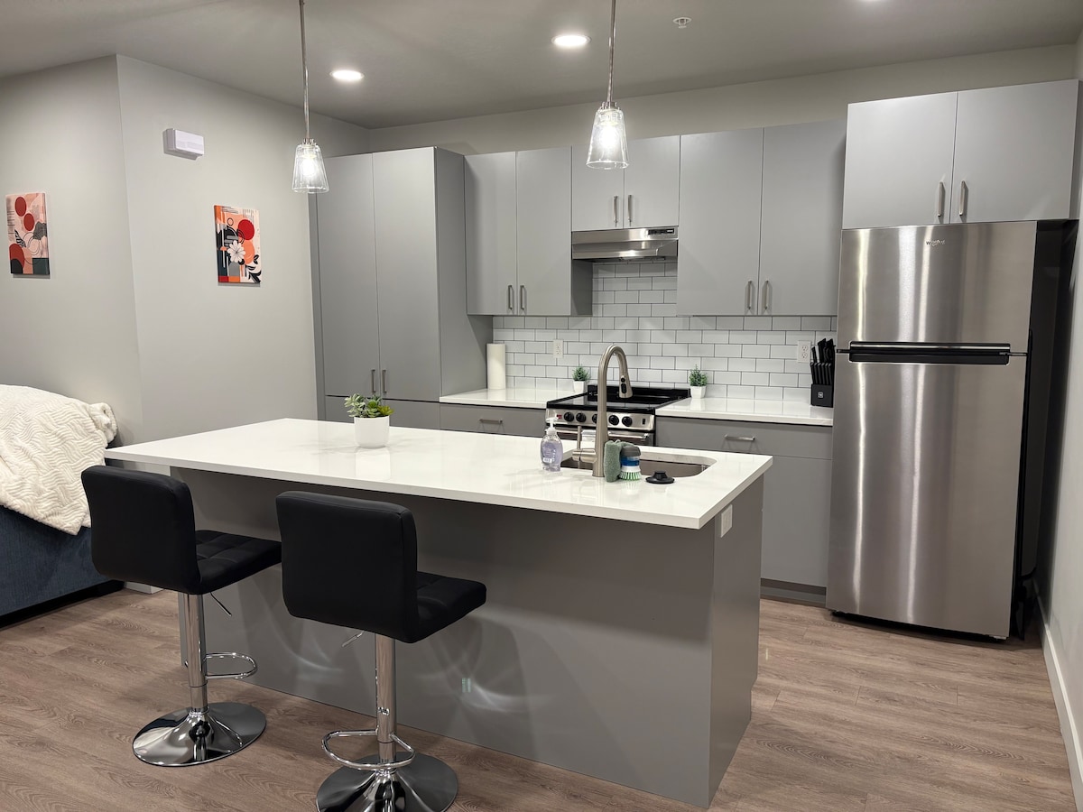Ovaj moderni stan u centru nudi sigurno i praktično urbano utočište. Uživajte u potpuno opremljenoj teretani, jednostavnosti pranja veša u jedinici, brzom Wi-Fi-ju za produktivnost i zabavu i udobnom ognjištu za opuštanje. Takođe ćete cijeniti bezbjednost bezbjednog pristupa zgradi i besplatnog parkiranja u zatvorenom prostoru. Izađite napolje i nađite se u blizini prodavnica, kafića i javnog prevoza u centru grada. Ovo je savršeno bez obzira na to da li putujete poslovno ili u slobodno vrijeme!