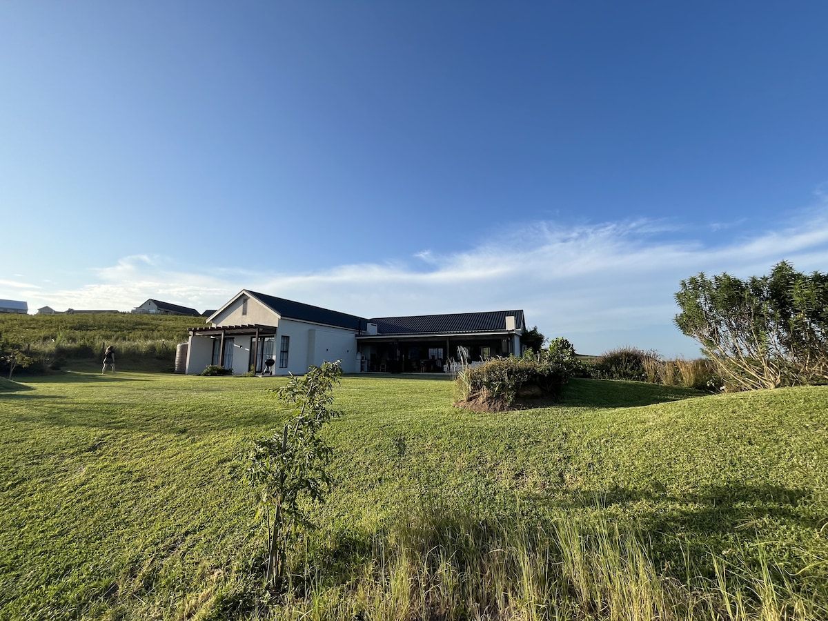 This oversized, farm-style, pet friendly home in a country estate is ideal for a large family looking for a house close to the beach (6km away), but away from the hustle and bustle of Ballito. The house boasts a huge garden with a fire pit and an entertainment patio with Pizza oven, braai area and fire place. The estate offers fishing, walking and riding trails, soccer fields, clubhouse, clubhouse pool and cricket nets!