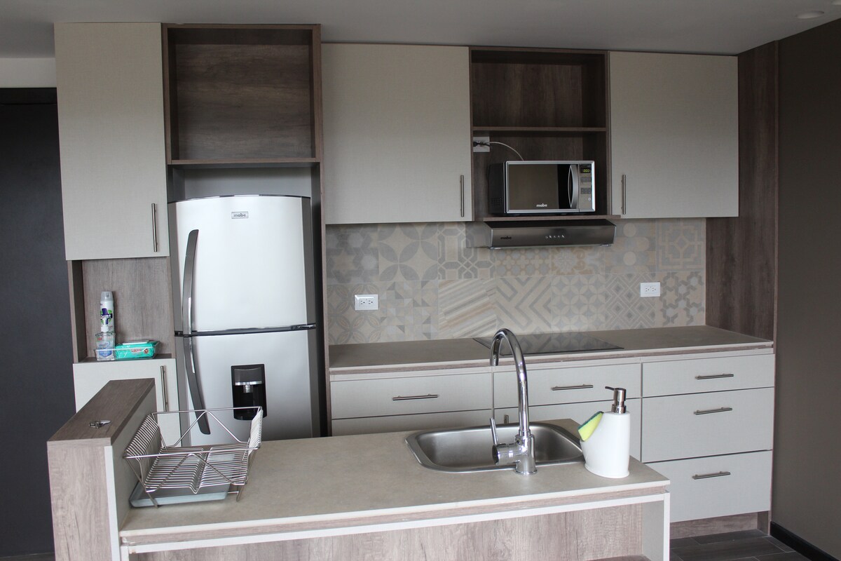 Moderan i udoban stan u strateškom području Saltilja, idealan za rad ili odmor. Ima 1 spavaću sobu sa mini-splitom, TV-om i kompletnim kupatilom, dnevni boravak sa Smart TV-om i opremljenu kuhinju. Uživajte u brzom internetu, ograđenom parkingu, zajedničkim prostorijama i zajedničkoj vešernici. Tih, čist i funkcionalan prostor, dizajniran da se osećate prijatno od prvog dana. Zabave nisu dozvoljene.