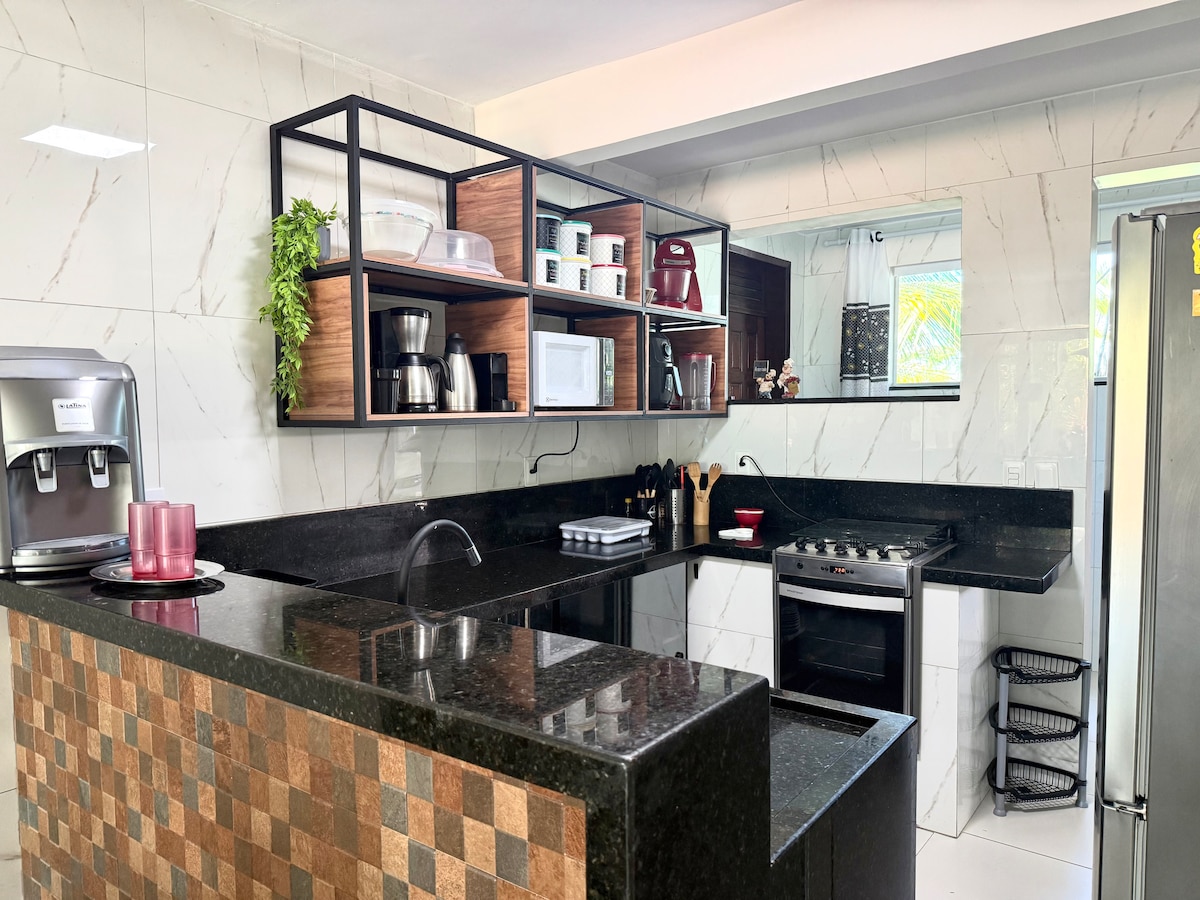 Velika kuća sa 4 klimatizovane sobe, dovoljno prostora za uživanje sa porodicom i prijateljima uz najbolju pogodnost! Ima veliki spoljni prostor sa bazenom, prostorom za roštilj, gurmanskim prostorom, visećim ležaljkama i sofama. Unutrašnji prostor sa potpuno američkom kuhinjom i dnevnim boravkom sa TV-om i WI-FI MREŽOM u cijeloj kući. Kuća ima 4 spavaće sobe sa klima-uređajem i 4 kupatila. Sve to u miru rezervata Sapiranga, na 10 minuta vožnje od sela Praja do Forte. Takođe, u blizini je nekoliko drugih sadržaja