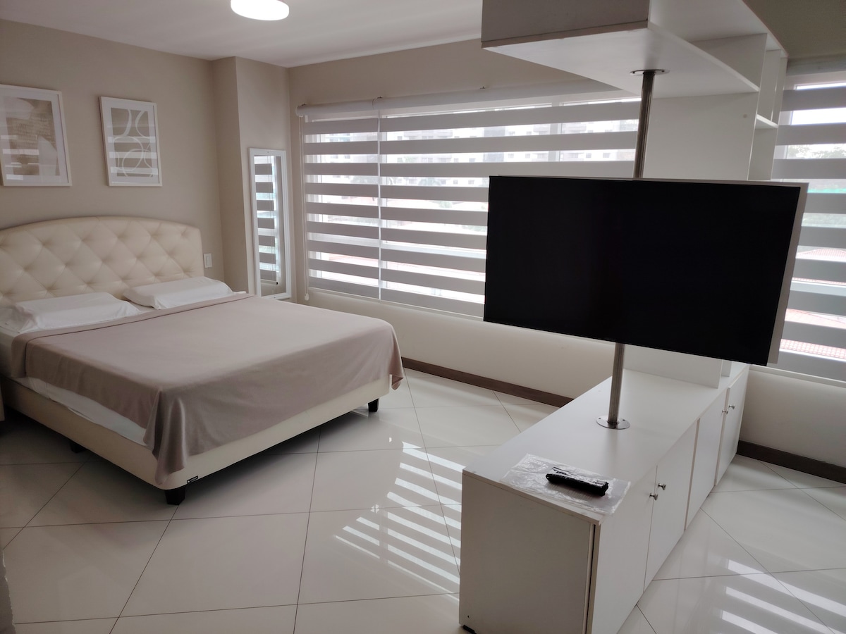 Moderan, udoban, idealan za rukovodioce, nalazi se u luksuznoj zgradi City Suite sa spektakularnim pogledom na grad, apartman je udaljen jedan blok od gradskog tržnog centra i 15 minuta od AERODROMA GYE Zgrada ima 24-časovno obezbeđenje na recepciji i ima privatni parking (parking je samo za automobile ili kombije)