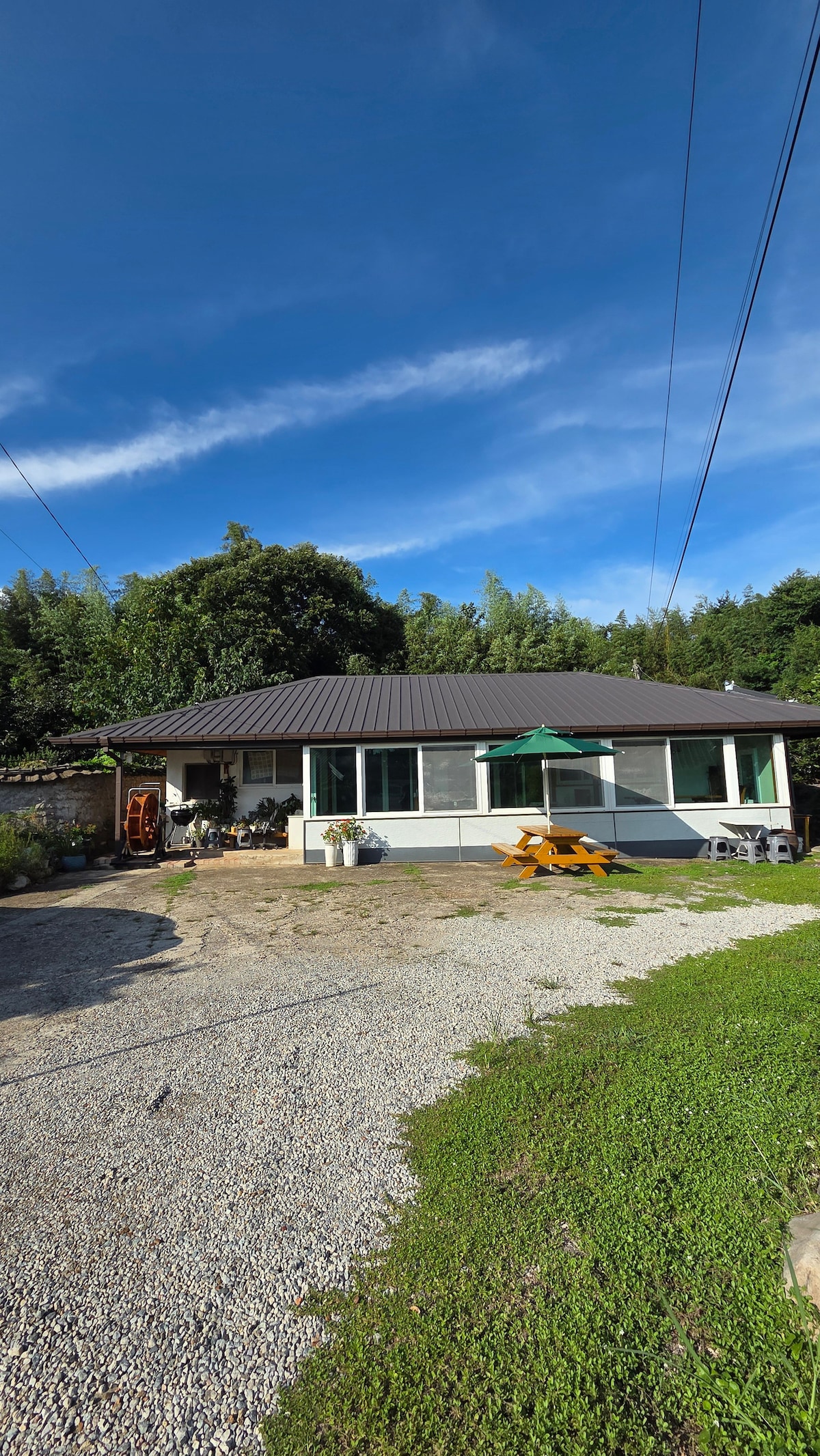 Naša baštenska farma leptira (kuća je crvena krovna kuća sa desne strane fotografije, mala kuća za upravljanje na levoj strani fotografije) nalazi se u Hampyeong-gun-u, koji je široko poznat kao festival leptira. Možete da vidite kamenu plažu prekoputa, a morska voda Hampyeong, poznata i po morskoj supi na pari, udaljena je kilometar. U našoj kući na farmi možete da vidite prirodnu plažu sa blatom koji gleda na nju, možete da imate sopstveno iskustvo sa blatom, a možete da uživate u prelepom zalasku sunca na zapadnoj obali sa travnjaka u kući. Takođe, s obzirom na to da je komšiluk ceo Hwangto Field, sama kuća je stara prljavština izgrađena od prljave cigle pre oko 50 godina, a nedavno je izgrađena na dnu zida sa čempresom (hinoki), kućom za lečenje koja kombinuje žutu glinu i čempres. To je stara kuća sa zemljom, pa je pažljivo od vas što postoje neke neprijatnosti u poređenju sa modernim zgradama kao što su stanovi. Međutim, s obzirom na to da se radi o smeštaju pogodnoj za prirodu, mislim da će nam to mnogo pomoći u boravku noću.