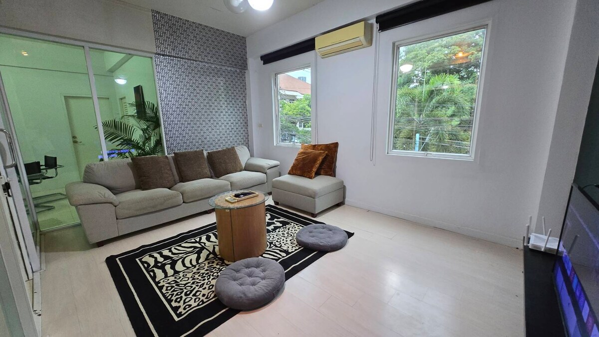 Dobro došli u našu novouređenu trospratnu kuću u nizu, vašu savršenu bazu u živopisnom Bangkoku! Smješteni u živahnoj četvrti, bićete samo nekoliko minuta od najpopularnijih atrakcija, ukusne ulične hrane i modernih kafića. Ova prostrana kuća u nizu idealna je za porodice ili grupe, sa 3 spavaće sobe, 2 kupatila i WC-om. Moderan dizajn i raspored prikladan za djecu nude udobnost i praktičnost. Osim toga, uz jednostavan pristup SkyTrain-u, možete lako doći do najboljih znamenitosti i doživljaja u gradu.