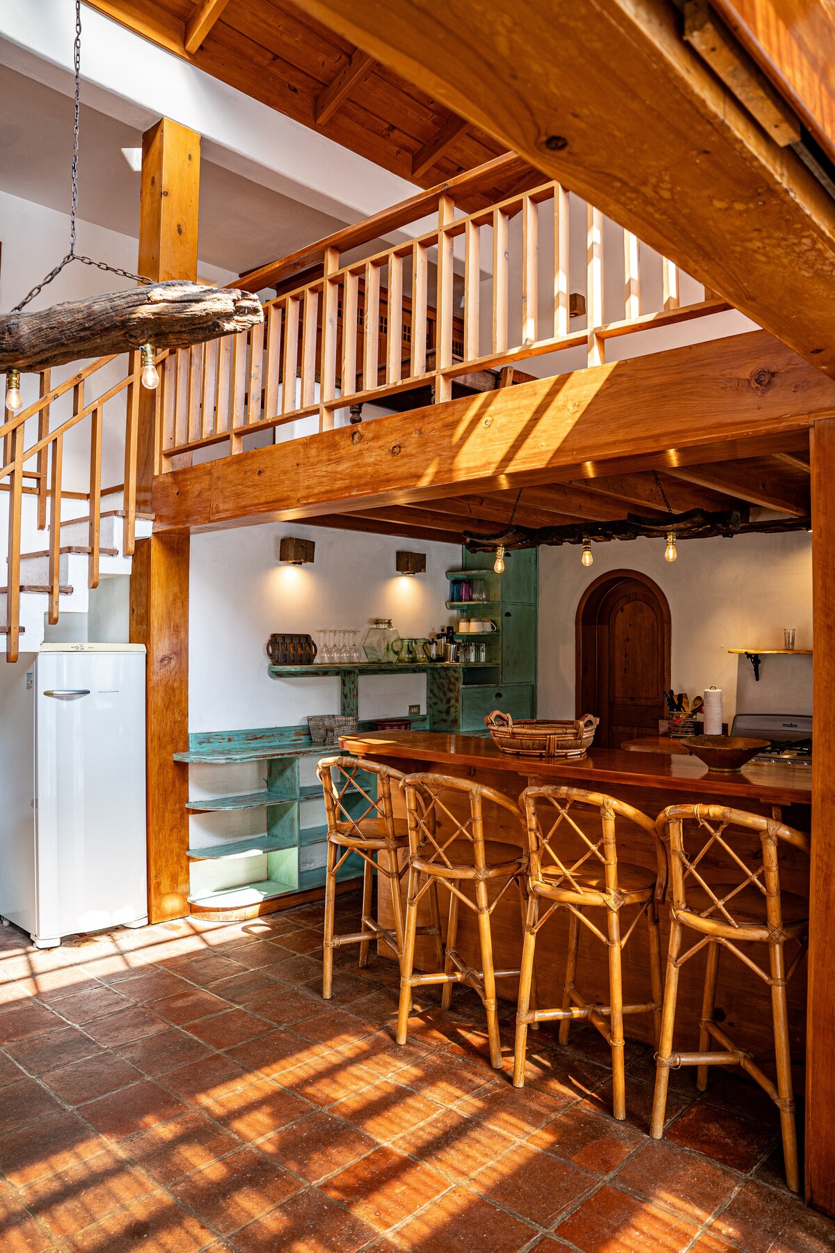 Jedinstveno dizajniran prostor ima svijetao i prozračan tlocrt, sa 2 ugrađena bračna kreveta (plus jedan krevet za jednu osobu), kaminom, dnevnim boravkom koji služi i kao dodatni prostor za spavanje (najbolji za djecu), potpuno opremljenom kuhinjom, kupatilom sa kadom za kupanje za dvije osobe, trpezarijom i unutrašnjim dvorištem dugim 10 metara sa dnevnim krevetom, visećom ležaljkom i prostorom za sjedenje. Naravno, sve sobe imaju spektakularan pogled na jezero i veličanstvene vulkane po kojima je poznato jezero Atitlan.