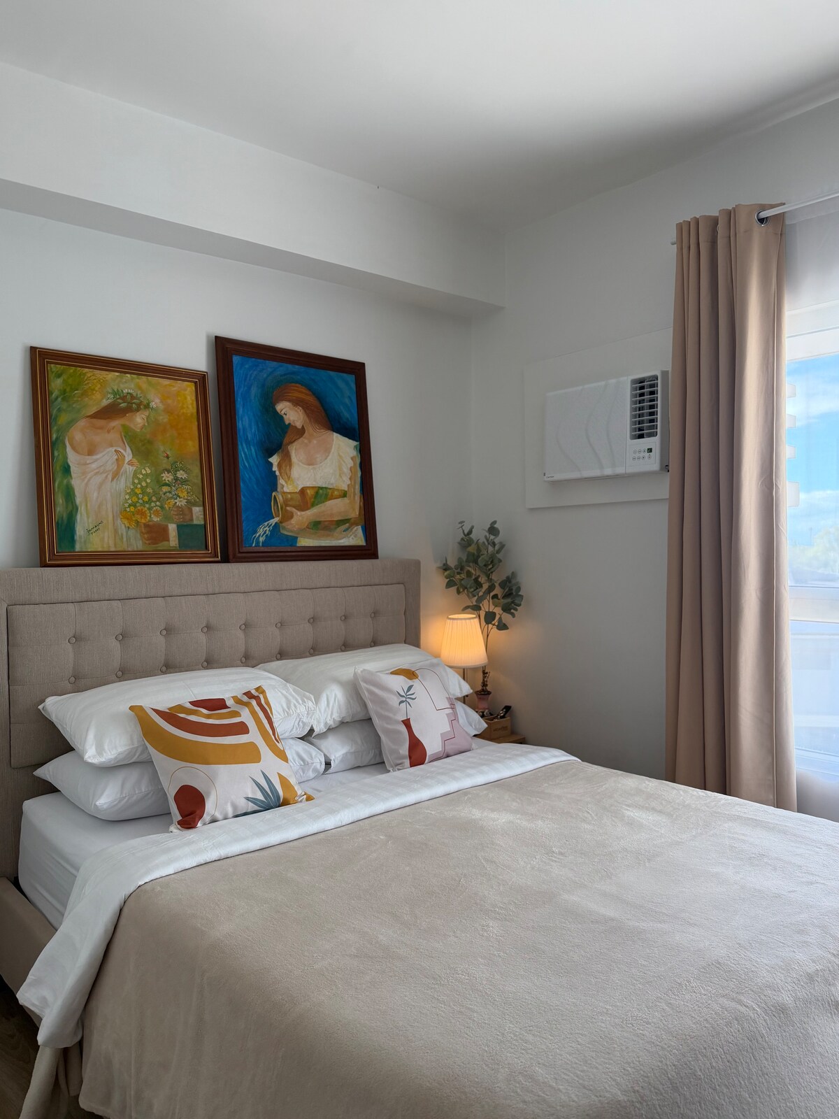 This home away from home is clean, comfortable, peaceful, and beautifully decorated. It has three bedrooms, and two full-size bathrooms. All three bedrooms have air conditioners, as well as the living room. The kitchen is well equipped with appliances and cookware. The fiber Wi-Fi is fast and reliable, which is great for remote work. It is located in the quiet neighborhood, with a 24/7 security guard. It is a seven to eight minute drive to the new government center, restaurants, and malls.