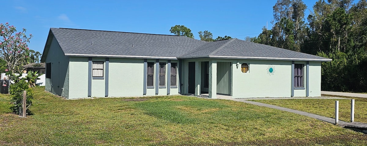 Dobro došli na odmor sa otvorenim tlocrtom i odlaskom do grijanog bazena sa Weber roštiljem, udobnim sedištima i vatrogasnim stolom. Ovaj smještaj ima 9 osoba, 3 spavaće sobe i 2 kupatila. Mirno okruženje u kojem možete da čujete palme u dvorištu. Samo 20 minuta do Ft. Majers Bič, plaža Bonita, Bosonogi Bič. Dostupne su sve potrepštine za plažu, uključujući stolice, suncobran, frižider i peškire. Vrlo blizu bejzbol stadiona, kupovine i FGCU-a. Jedva čekam da uživate u svim ponudama ove lokacije. Dobro došli!