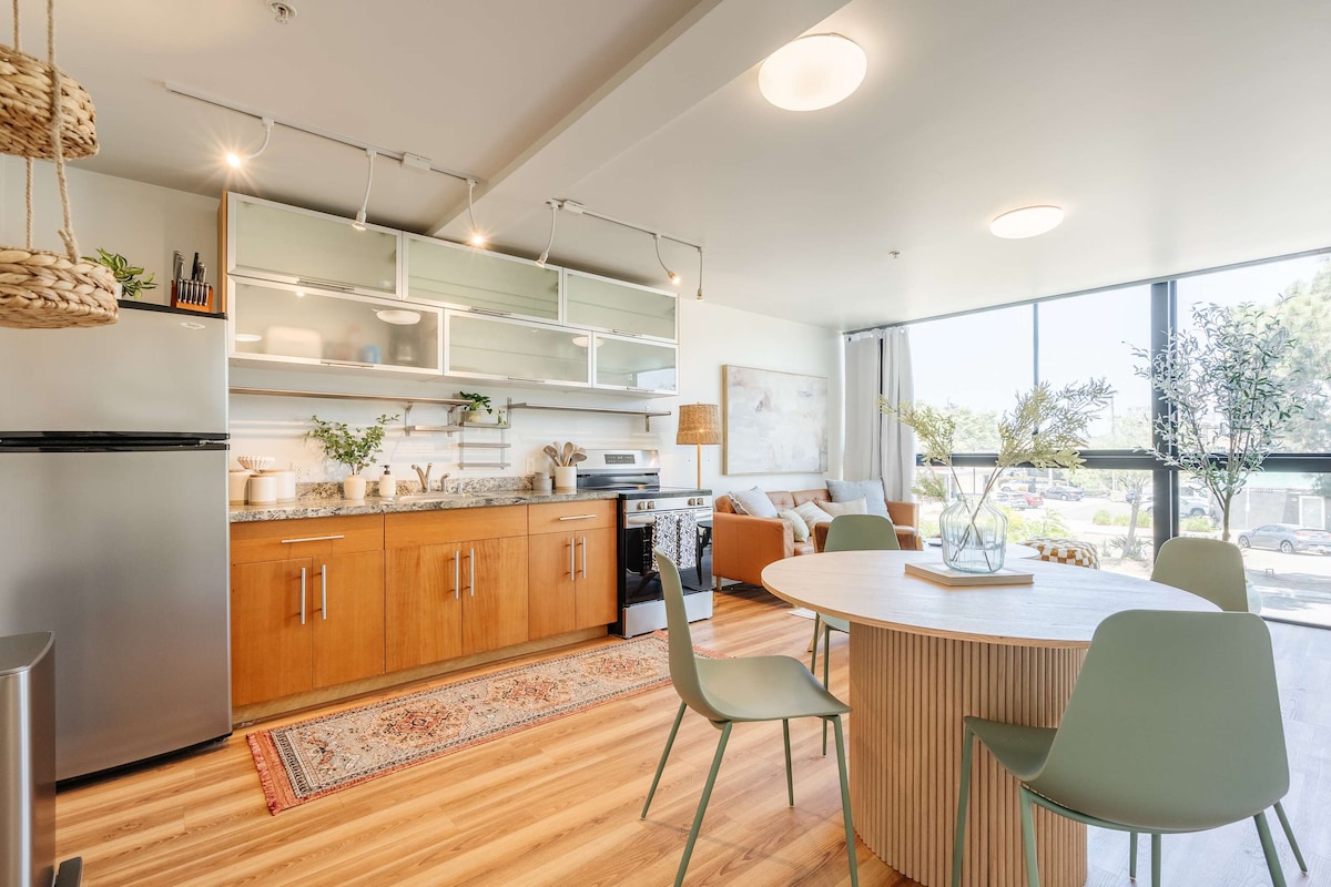 Dobrodošli u Kanzas Modern, mesto gde luksuz i avantura idu ruku pod ruku. Dizajnirana od strane lokalnog arhitekte i dizajnera Beri Varola, ova potpuno nova zajednica mješovite namjene nalazi se u srcu Nort Parka. Ovaj stan u prizemlju ima privatnu spavaću sobu i polu-privatno potkrovlje za spavanje, od kojih svako ima bračni krevet. Apartman se nalazi u srcu nekih od najuzbudljivijih novih i etabliranih restorana u San Dijegu. Kuhinja je takođe u potpunosti opremljena ako biste radije pripremili obrok kod kuće