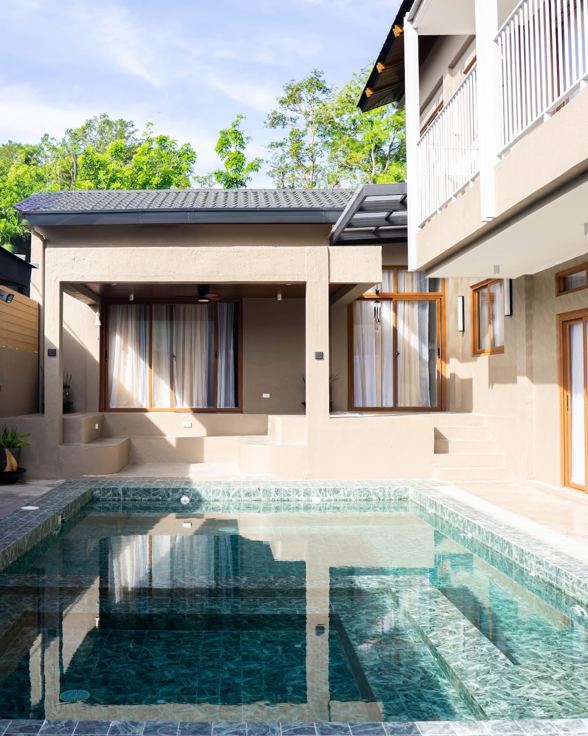 Jacuzzi pool deck view family Villa with kitchen
