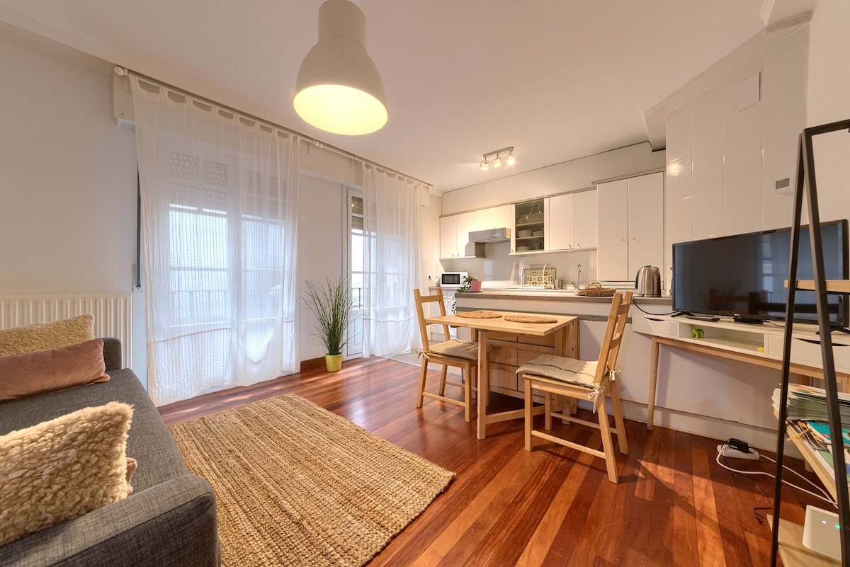 Postoji mnogo načina da upoznate Bilbao, ali samo jedan da ga osjetite: živite ga iz samog srca grada. Mogli bismo da vam kažemo da će ovo biti vaš prostran, udoban i svijetao dom u Bilbau, ali to već vidite na fotografijama. Zato želimo da vam kažemo ono što možda ne znate. To će pod vašim nogama biti La Vinja del Ensanche, jedan od najpoznatijih barova u gradu, a okrenut prema drugom: Globo bar i njegov poznati tksangurro pintkso. Tako ćete živjeti u dijelu Bilbao duše.