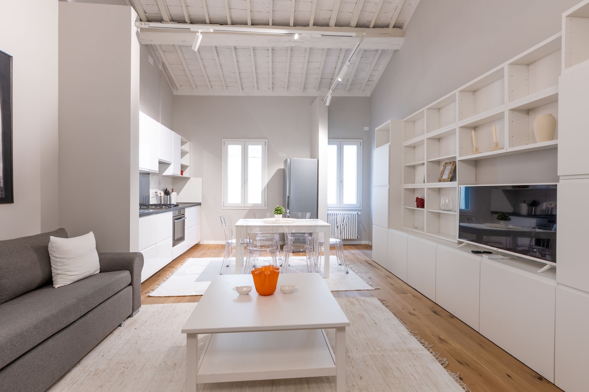 Ekskluzivan i prefinjen apartman na drugom spratu istorijske zgrade iz 16. veka, u srcu Firence. Sa izloženim gredama, parketom i ručno izrađenim firentinskim nameštajem, kombinuje istorijski šarm sa modernim dizajnom, stvarajući toplu i gostoljubivu atmosferu. Idealno za parove, prijatelje ili porodice, nudi centralnu lokaciju na pešačkoj udaljenosti od svih glavnih atrakcija, od muzeja do istorijskih trgova.