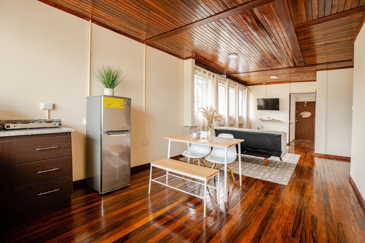 Super kul stan sa jednom spavaćom sobom koji se nalazi u centru San Hozea. Nedavno renovirano, odlično unutrašnje dvorište, veoma elegantno i udobno. Sedam ulica dalje od Metropolitan parka La Sabana i šest ulica dalje od Mercado Central-a San Hozea. Mesto se nalazi u blizini glavnih gradskih atrakcija, autobuskih stanica, restorana i barova. Stan je potpuno opremljen i ima veoma lepu terasu sa visećom mrežom, odličnom za opuštanje u sunčanim popodnevima.