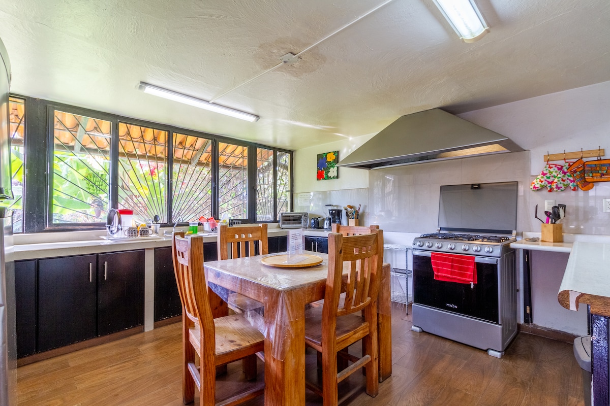 Udobna vila za nekoliko porodica ili grupe prijatelja sa dovoljno prostora i velikom terasom i bazenom za uživanje u jelima na otvorenom. Uživajte u kafi ujutro na unutrašnjoj terasi kuće ili iz krovne bašte. Posjetite centar Čapale ili Ajijića i uživajte u kulinarskom doživljaju udaljenom samo 15 minuta.