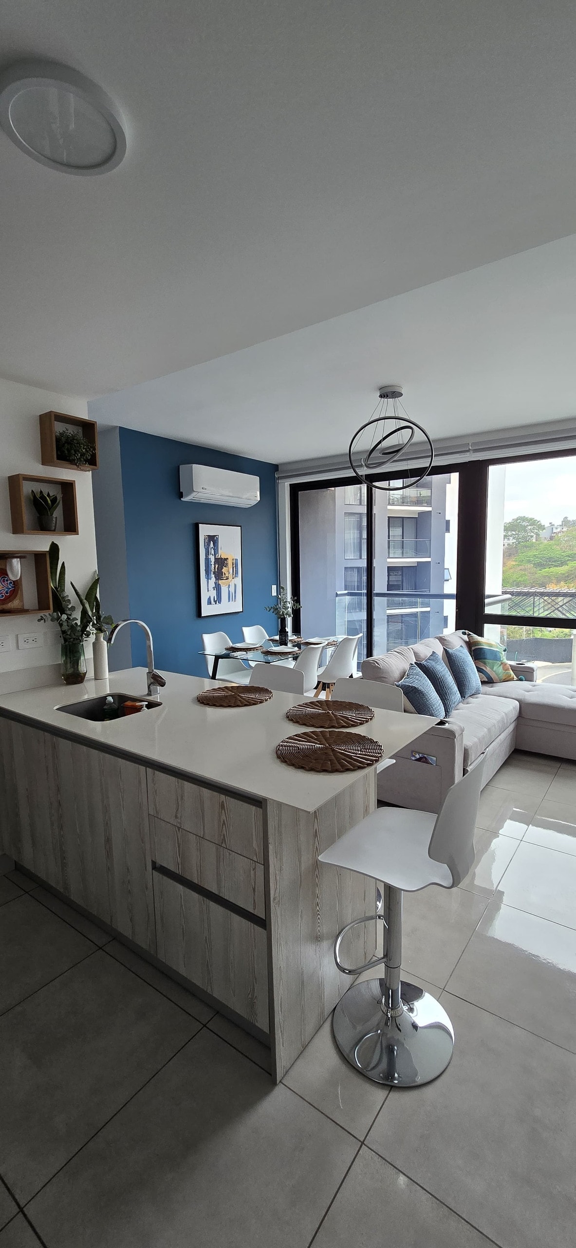 Potpuno novi luksuzni stan u Nucleo Sabani. Ima minimalistički stil sa svim potpuno novim uređajima, uključujući klima-uređaj, 2 pametna televizora. Brzi internet sa TV uslugom. Vešeraj uključuje mašinu za pranje/sušenje veša, 2 u 1. Ima divan pogled na vrh drveća i nebo na balkonu. Pored nje se nalazi rijeka tako da uvijek možete da uživate u zvuku rijeke. Kompleks: Više od 30 sadržaja, uključujući gastronomsku pijacu(NucleoGastro). Nalazi se 10 minuta od Međunarodnog aerodroma Huan Santamarija (SJO).