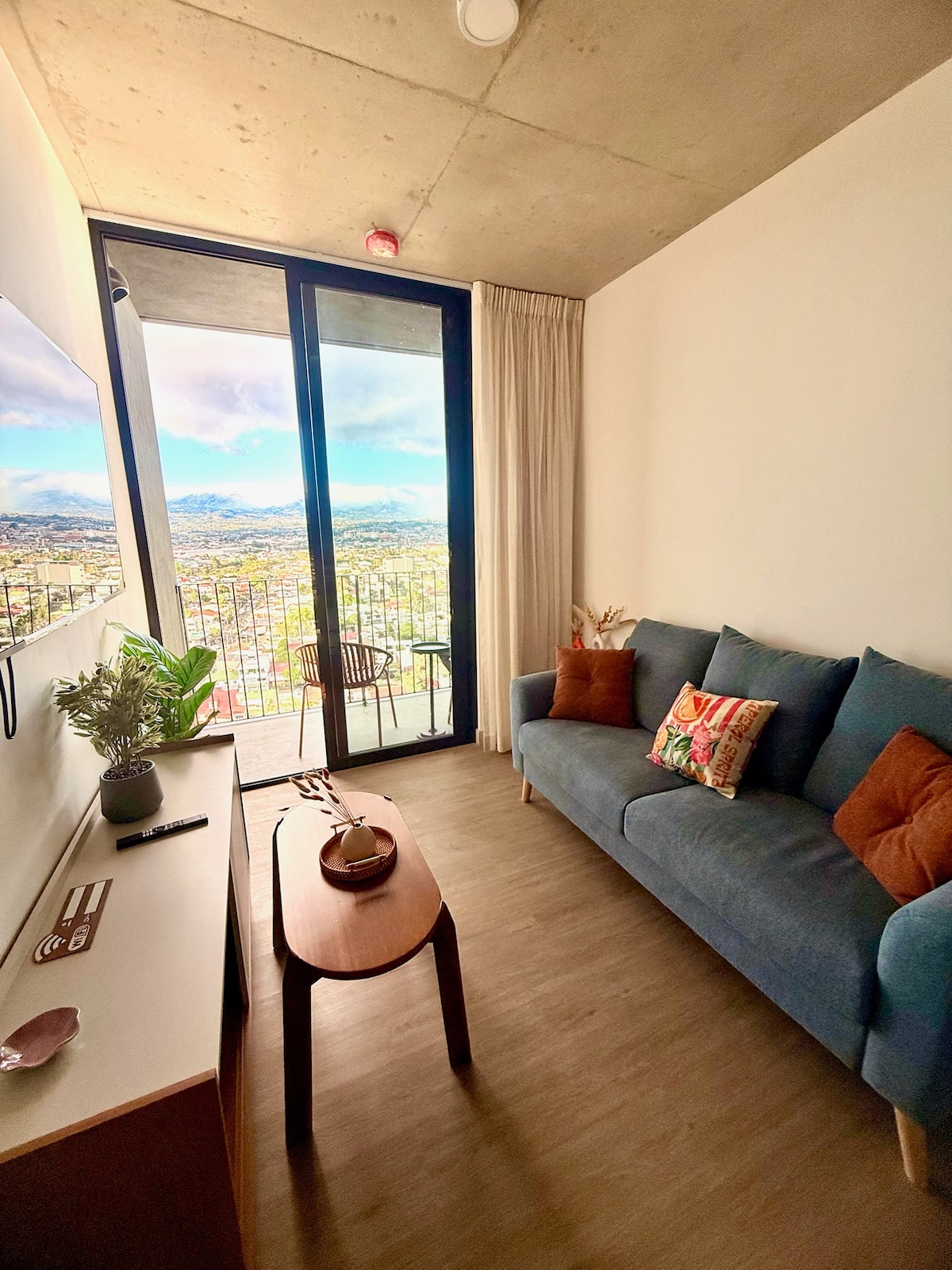 Doživite San Hoze iz modernog apartmana sa panoramskim pogledom na grad u ekskluzivnom kompleksu Núcleo Sabana. Potpuno opremljen Wi-Fi 5G mrežom, pametnim TV-om, kompletnom kuhinjom i privatnim parkingom. Uživajte u vrhunskim sadržajima, uključujući bazen, teretanu, saunu, staze za plivanje, teren za razne sportove, sobu za karaoke i prelepe zelene površine. Nalazi se nekoliko koraka od parka La Sabana, Nacionalnog stadiona i svih restorana. Savršeno za poslovne putnike, parove ili svakoga ko traži udobnost i stil u živopisnoj prestonici Kostarike.