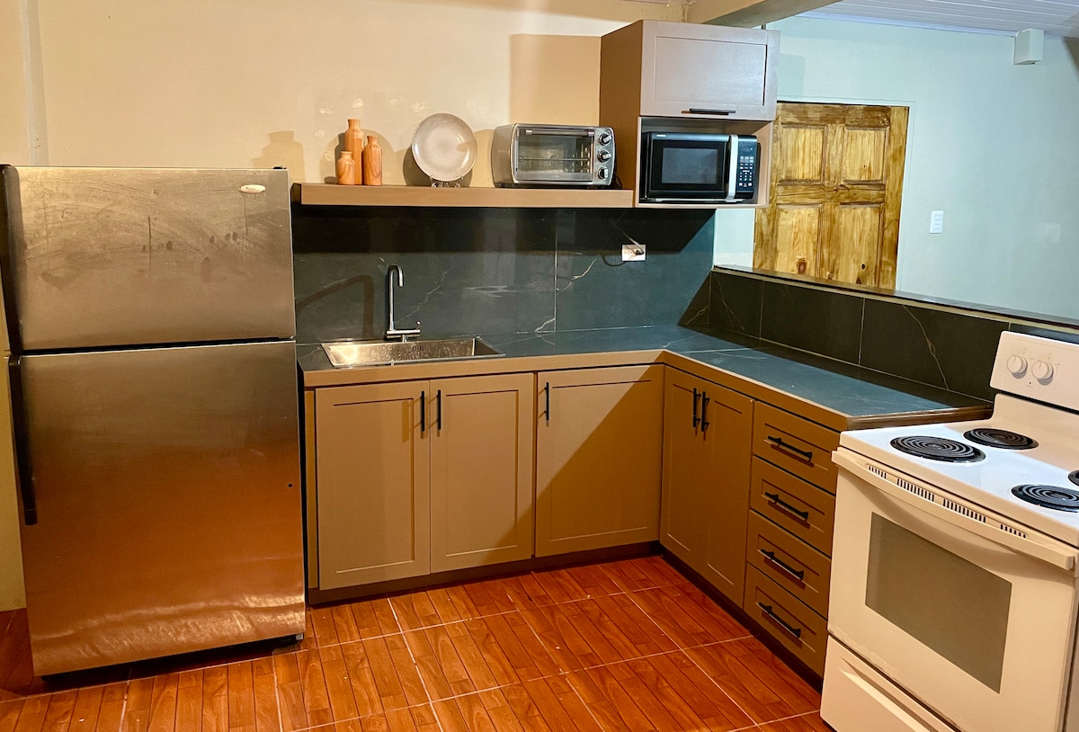 Enjoy spectacular views at this Fully Equipped 1 bedroom natural oasis nested in the beautiful and secluded hills of Petit Bourg, San Juan. You'll have a complete apartment outfitted with a full kitchen (dishwasher too), a laundry with a stacked washer-dryer and a King-sized bed that can be separated into 2 single beds. Enjoy the best of worlds with a peaceful retreat that's conveniently 15 minutes away from the city and only 8-10 minutes away from supermarkets, parks and restaurants.