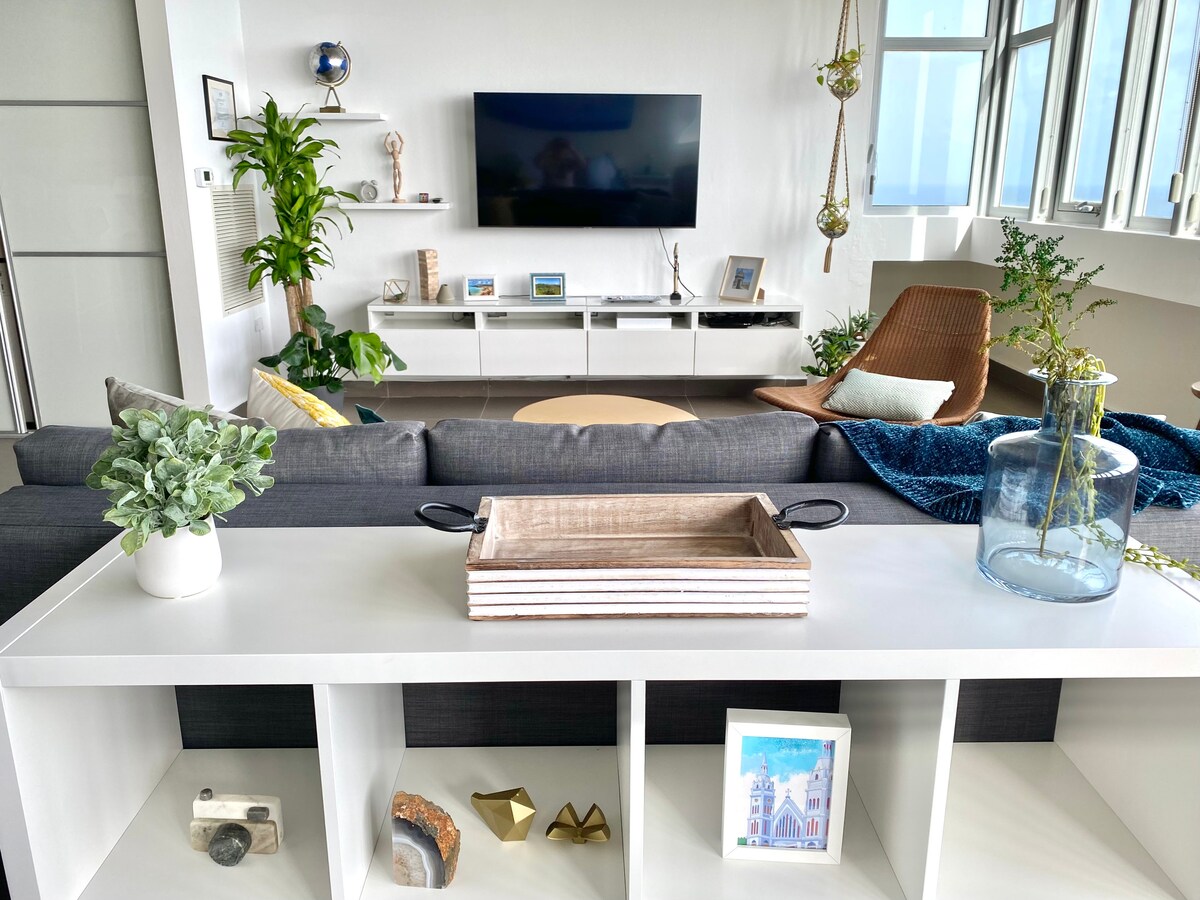Bright and beautiful loft with high ceilings, the best location, and a breathtaking view of the Atlantic Ocean. This loft is located at the 22nd floor of a luxury condo in the heart of San Juan, between the charming Old San Juan and the lively Condado area. Great for business travel, couples, and small families.