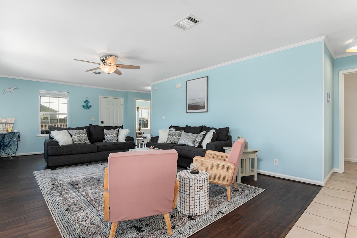 Počastite se opuštajućim boravkom u ovoj udobnoj seoskoj kući iz 1950-ih. SandPiper Cottage nudi mirno okruženje ušuškano u mirnom susjedstvu (2 bloka od plaže i manje od 2 minuta do Moody Gardens i Schlitterbahn). Uživajte u šetnji plažom uz zalazak sunca ili uživajte u lijenom poslijepodnevu na prostranom trijemu u dvorištu. Luksuzni kafić će vam uljepšati boravak. Opuštanje je samo bacanje šljunka na plaži!