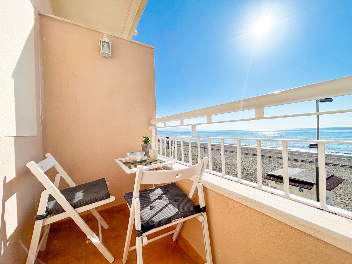 Apartment on the beachfront, facing the sea, in La Noria IV, Sabinillas. Total relaxation: the waves of the sea can be heard from the apartment. Terrace with stunning sea views. Air-conditioning and heating. Parking area. Gated community, 24-hour security, day concierge, 2 swimming pools (one for children) with lifeguard, 2 paddle tennis courts, children's area. Direct access to the beach and promenade with 2 beautiful beach bars, very close to restaurants and the center of Sabinillas.