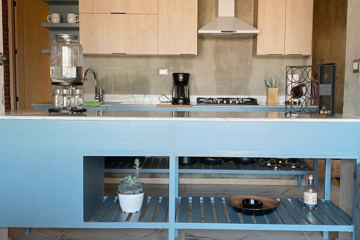 Bright, modern high-rise space on the 18th floor with open city views. Ideal for couples, friends, and relaxed longer stays Rooftop with panoramic view 360°. 3 Queen beds for up to 6 guests Equipped kitchen Large-capacity washer and dryer Electric blinds and high-speed Wi-Fi for home office Enjoy a 24/7 GYM, and in-building parking for 2 cars Pet-friendly building with security service and 24/7 security cameras Quick access to Cholula, Angelópolis, and Val’Quirico