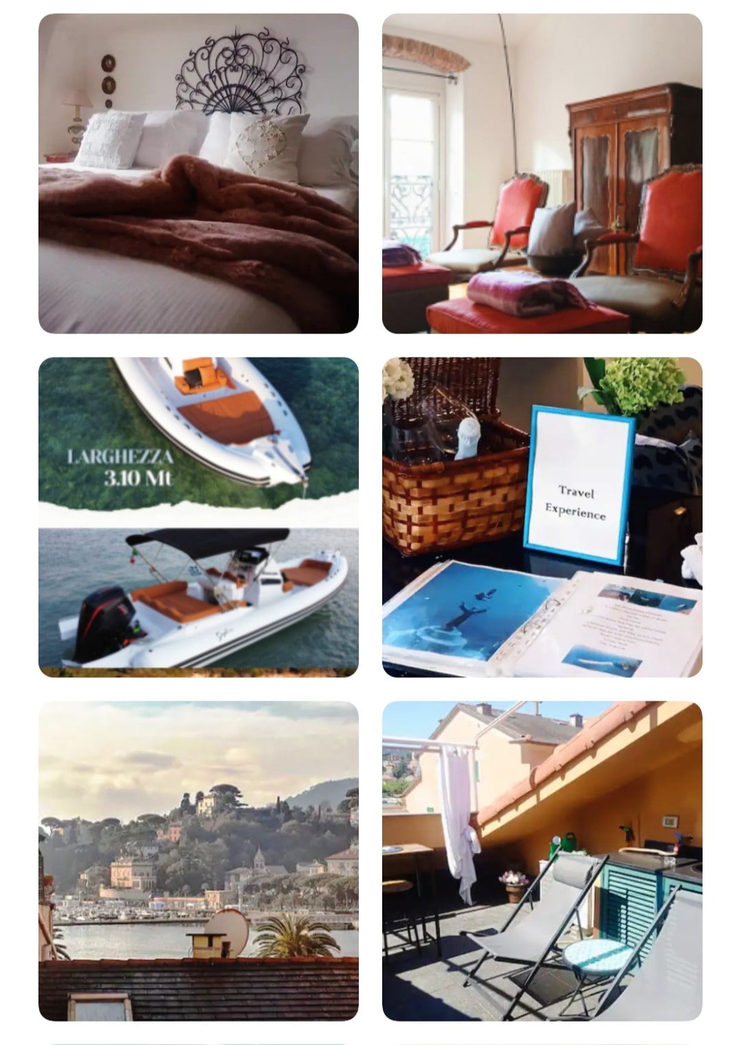 70 m2 se nalazi u Rapalu, u blizini Santa Margarite Ligure i Portofina (dostupan udobnim i čestim autobusima, ali i brodom). Kuća je na 10 minuta od mora i istorijskog centra i na 15 minuta od železničke stanice. U stambenom dvorištu sa zelenom površinom i teniskim terenom (može se rezervisati) ima privatno parkiralište sa barom i ograničenim brojem mesta, ali može biti zauzeto ako je besplatno. 28 noćenja