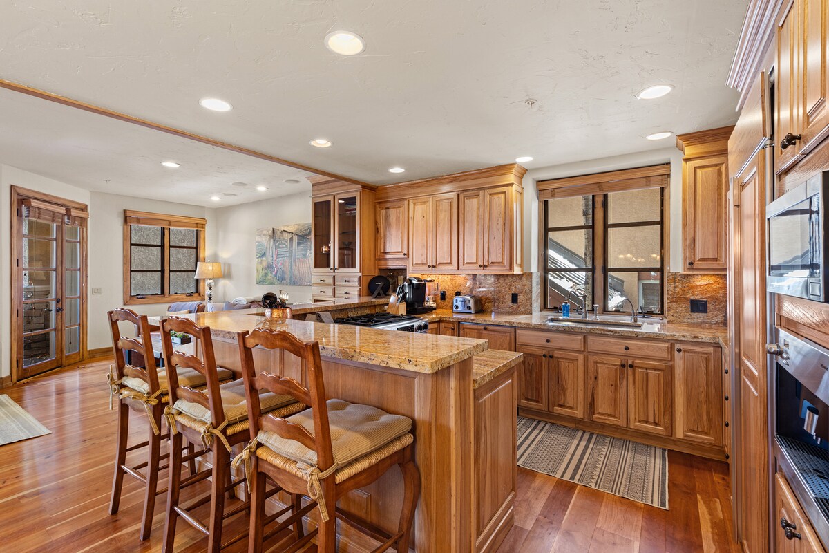 Dobro došli u Ridgeview Retreat at the Lorian, čiji je domaćin InvitedHome. Zakoračite u ovaj svijetli i privlačni prostor, sa savremenim završnim obradama za uzvišeni moderni osjećaj. Glavni ulaz vodi direktno u dnevnu sobu s dovoljno mjesta za sjedenje, plinskim kaminom i prelijepim pogledom na greben. S lijeve strane su kuhinja i trpezarija. U kuhinji ćete naći predivne uređaje od nerđajućeg čelika, prostrano ostrvo sa sjedećom garniturom za četvoro i frižider za vino. Kuhinjski sto kombinuje klupu i stolicu