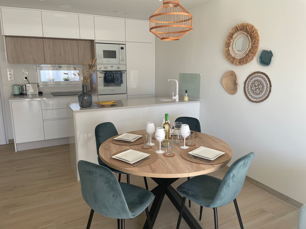 Ovaj mirni dom nudi opuštajući boravak za cijelu porodicu. Nalazi se u novoj rezidenciji, vrlo je blizu centra, ali je miran. Ovaj stan ima 2 spavaće sobe, 2 tuš-kabine i svu udobnost koja vam je potrebna za odličan boravak sa prijateljima i porodicom. Uživajte u terasi okrenutoj prema jugu, 2 koraka od bazena i igrališta za decu. U blizini svih sadržaja i 15 minuta do plaža.