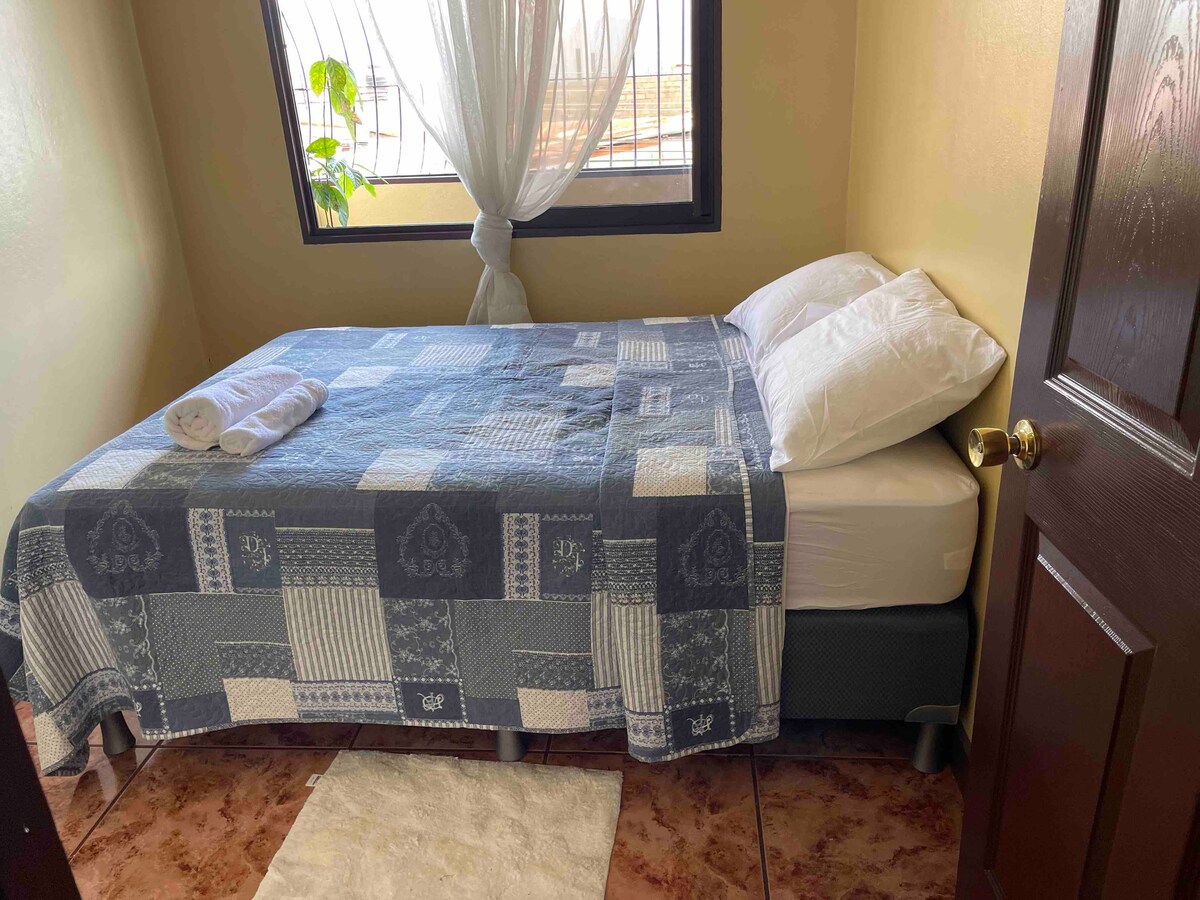Welcome to PROVECHOZAS! This UPSTAIRS unit is on a family-owned property home to fruit trees & wildlife. This cozy space offers a private & central place to rest & recharge, making it perfect to plan your next adventure or unwind before a flight. ⚠️Noise can be expected between 6am-10pm from Sports Center. 🐶Large dogs on-site, accomodations for fearful guests can be made. Balcony not suitable for children/pets. SJO airport(5 mins) CityMall(2 mins) City Center(8 mins) Poas Volcano(1 hr)