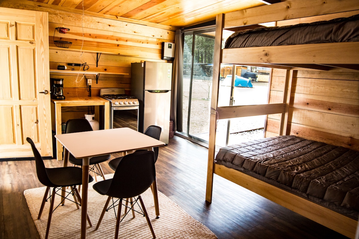 Desconectate cuando te quedes bajo las estrellas. Nuestra pequeña cabaña para parejas o para dos personas te hará vivir un momento inolvidable en contacto con la naturaleza al justo modo de glamping, sin sacrificar algunas comodidades necesarias. disfruta de un bello paisaje admirando las imponentes sierras de Arteaga, Coahuila, mientras lees un libro o disfrutas de una copa de vino con tu pareja. Visítanos y disfruta el aire del campo y la belleza de la naturaleza, TINY CABIN te espera.