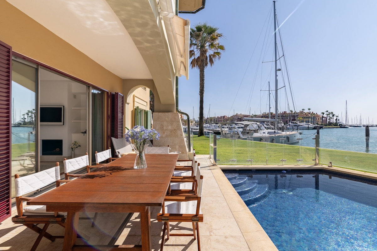 Opustite se u ovoj tropskoj i mirnoj oazi u Sotogrande Marini. This is a 2Br and 3 Baths Duplex (180 square meters) located in Paseo del Mar with amazing views to the Marina in Sotogrande, closed to Gigi 's Beach, 1 min walk to the beach, Tennis club, the Octogono beach and pool club and Yacht Club. Ima niz sadržaja za život kao kod kuće: brzi Wi-Fi, TV spreman za strimovanje, potpuno opremljena kuhinja i osnovna oprema za kuvanje, komplet za pranje veša u jedinici, peškiri za tuširanje i plažu, pegla i fen za kosu.