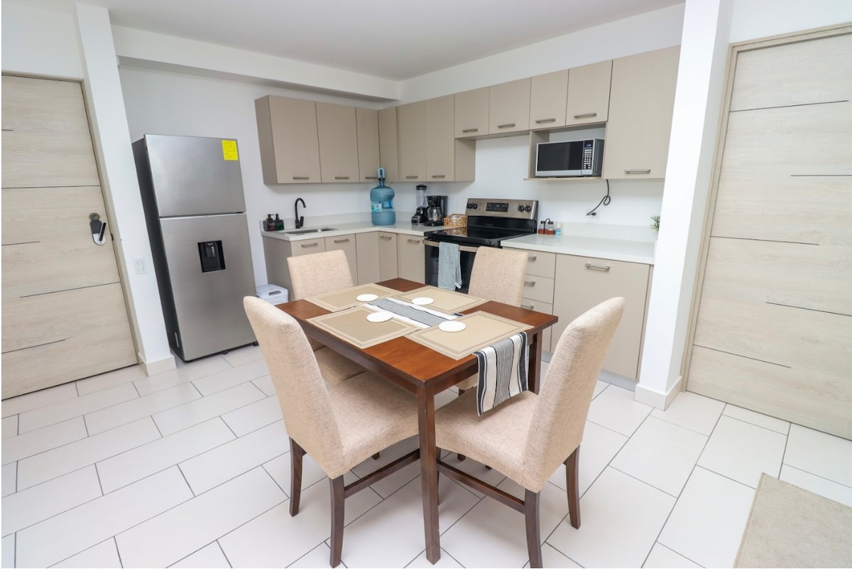 Dobro došli u naš izuzetni dvosobni stan s pogledom na grad u San Salvadoru, pažljivo osmišljen i za putnike i za poslovne ljude. Glavna spavaća soba ima prostrani bračni krevet, što garantuje vašu udobnost. Stan je potpuno opremljen za miran boravak. Uživajte u prijatnoj klimi grada uz naše sadržaje na krovu, uključujući bazen i teretanu. Nudimo poslovni centar i radne prostore. Sa dva parking mjesta i elegantnim kupatilima, vaš boravak će biti izvanredan.