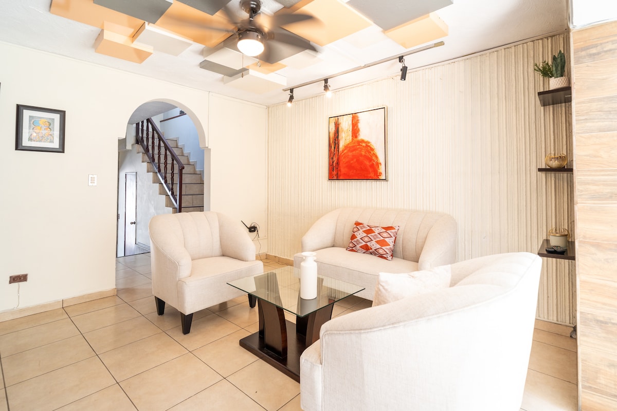 Novouređena luksuzna kuća u nizu koja se nalazi u ograđenoj zajednici (24-satni nadzor) u srcu San Salvadora. Udaljenost od El Hipódroma gdje možete pronaći nove restorane, prodavnice, noćni život, parkove, apoteke i supermarket. Oko 45 minuta od prelijepog, Lago Coatepeque & La Libertad/Zonte i 20 minuta od El Volcana. Potpuno opremljena kuhinja, klima-uređaj, televizori, Wi-Fi, Wi-Fi, Netflix, Netflix, kablovska, kablovska, topla voda, mašina za pranje i sušenje veša, besplatan parking. Odlično za poslovna putovanja i/ili odmor.