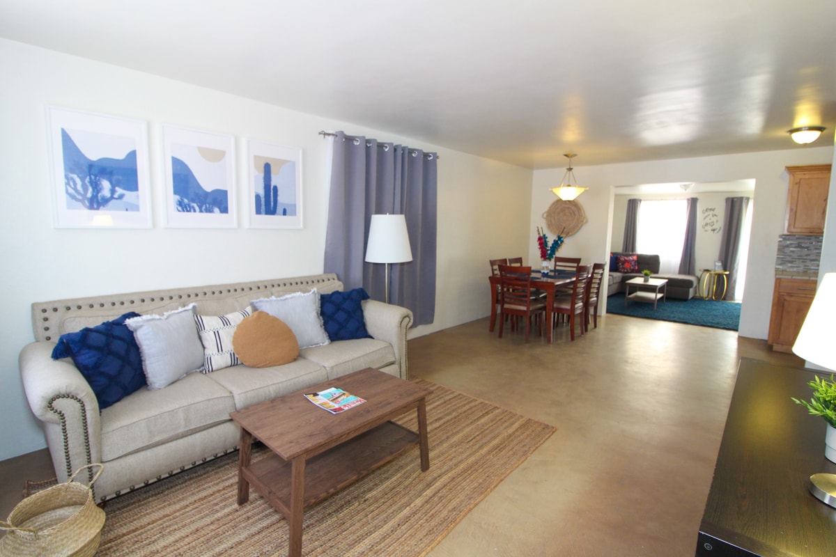 Prostrana, suncem obasjana kuća okružena predivnom Sonorskom pustinjom površine 3,4 hektara. Izađite na privatnu terasu da popijete kafu ujutro ili večerate uveče, a čula će vam se probuditi pred prizorima i zvukovima interesovanja i lepote pustinje. Ceo objekat je na vama da istražite i uživate, sa privatnom pešačkom stazom gde možete da pešačite do visine sa pogledom od stotinu kilometara. Dom se nalazi na visokom podu, a veliki prozori nude pogled od 360 stepeni. Budite inspirisani!