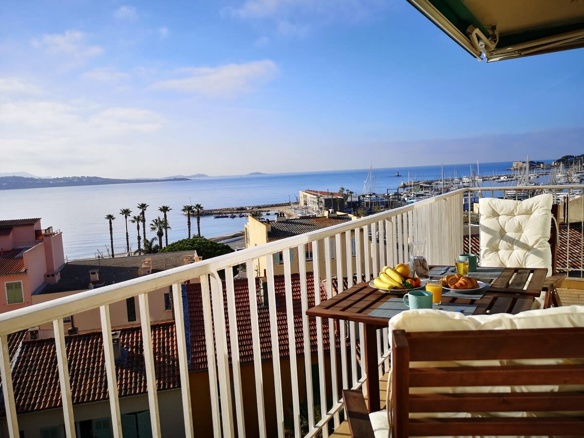 Prekrasan T2 od 48 m2 sa panoramskom terasom sa pogledom na more. Namješteni turistički 3 zvezdice. 1. sprat bez lifta. 2 minuta hoda od plaže. Luka La Čuduler i plaža su ispred. Stan se nalazi između Sanari-sur-Mera, poznatog po oštrim tačkama, a pijaca je izabrana za najlepšu u Francuskoj (<4 km) i male ribarske luke Brusc i ostrva Gaou i Embiez. (2 km). Internet konekcija od vlakana. Biciklistička staza. Stanica za iznajmljivanje električnih bicikala. Autobuska stanica za 2 minuta.