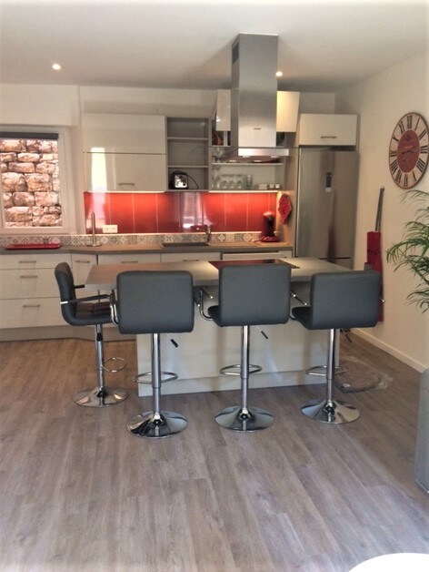Predivan stan u potkrovlju od oko 40 m2 sa ugrađenom kuhinjom, frižiderom i mašinom za veš, odvojenim toaletom, 160 gd udobnim krevetom i kaučem na razvlačenje, sa pogledom na najlepšu plažu u Bandolu. Izuzetan pogled na more, na plažu Renécros, luku i centar grada peške, privatno parking mesto sa električnim PUNJENJEM, dobro nov.