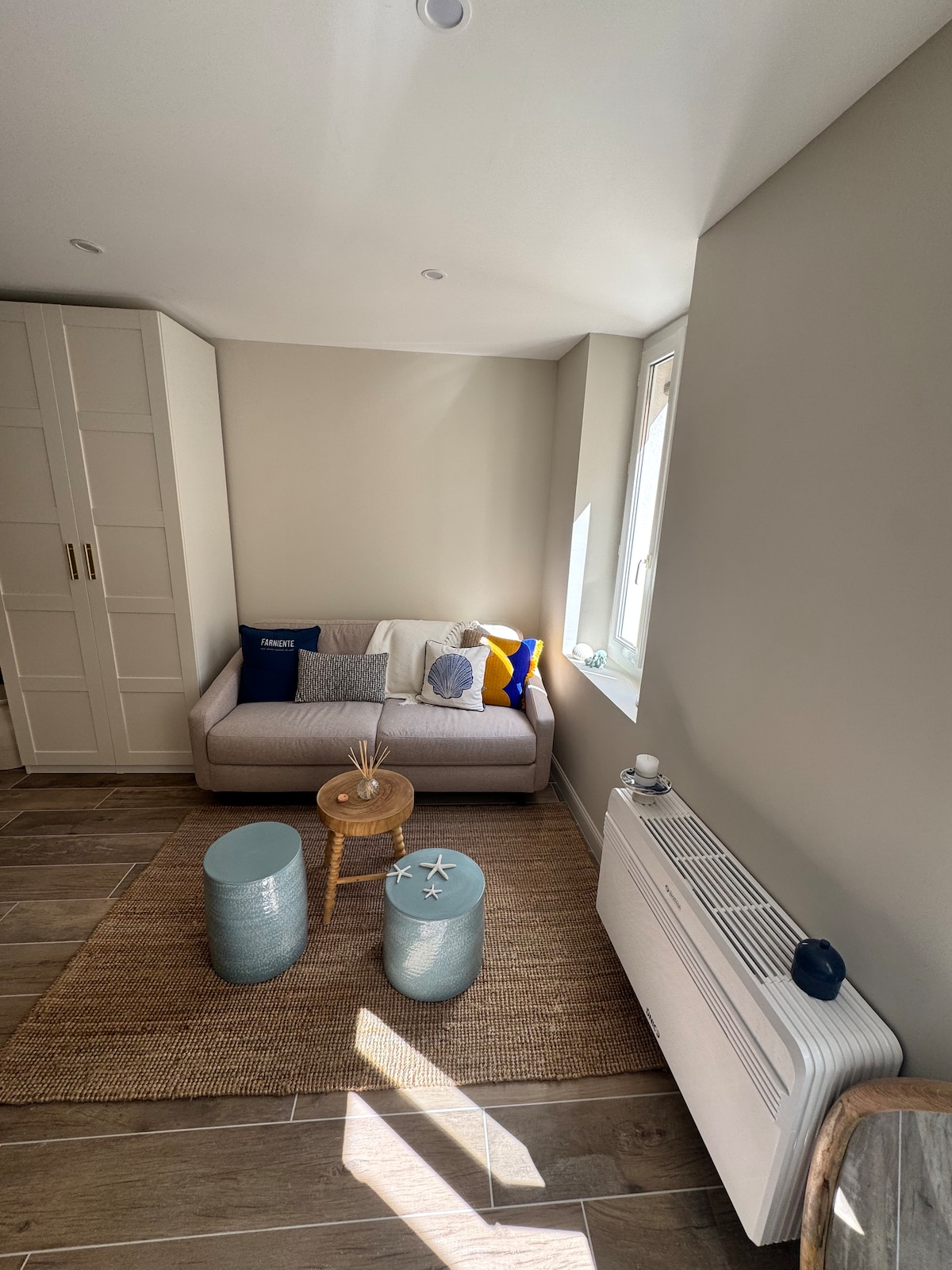 In 2023 renovated, high-quality and lovingly furnished 1-bedroom flat in the heart of the pedestrian area of Sanary, yet very quiet. By foot the port is only 100 meters and the beaches are only 400 meters away. Each room of the flat is nicely bright with the same stunning view (SW-direction) on the old town of Sanary. From the balcony you'll enjoy the beautiful daily sunsets.