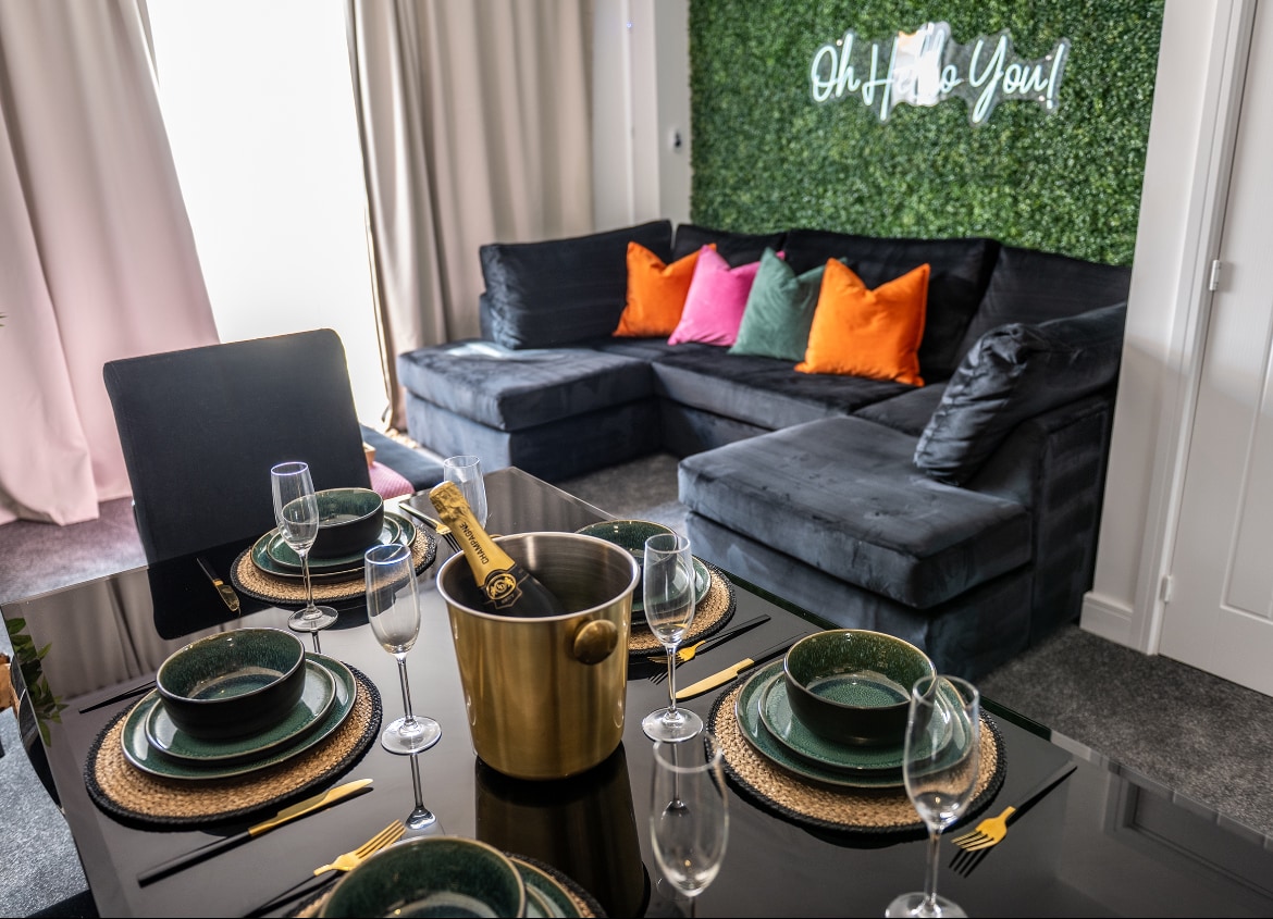 The two-storey guesthouse is a modern extension (built 2019) to the main house (built 1852). The ground floor has two bedrooms and a bright bathroom/WC. Upstairs, the open-plan kitchen, dining, and living area features high ceilings and opens to a decked garden with hot tub/jacuzzi and BBQ — perfect for relaxing. A 3rd sleeping room is a small loft with 2 single beds, is accessed by a ladder (not suitable for young children) This is a peaceful retreat, not suited to parties or loud gatherings