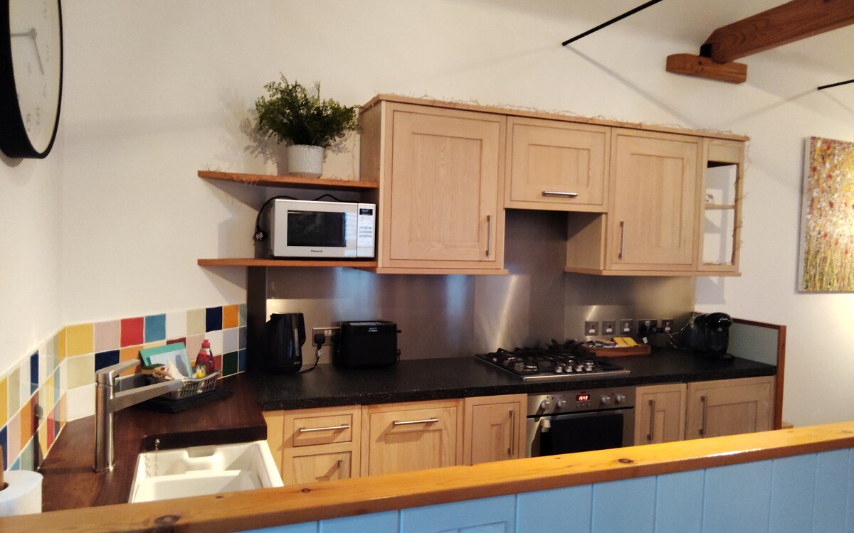 Smještena na 5 minuta hoda od Belih litica Dovera, žitnica je preuređena zgrada sa drvenim okvirom smeštena u bašti seoske kuće u Kentishu iz 16. vijeka i udaljena 1 km od prelepog primorskog sela St Margaret 's-at-Cliffe. Uz izložene grede, zidove vode i dauba i mnoge originalne karakteristike, uključujući staddlestone i ručno izrađene spiralne stepenice koje vode do mezaninskog prostora za spavanje, žitnica ima divan osećaj i veoma je lagan, topao i udoban.