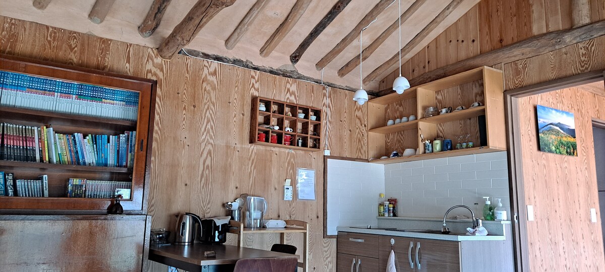 „Hyuhyujae” je kuća izgrađena od crvene gline, a možete videti prelepe pejzaže jer nema svetala i ljudi, a nalazi se na osamljenom mestu u selu. Možete da vidite podnožje Jirisana, koje je velikodušno kao vaša mama, a Ssanggyesa i Kuksaam su udaljeni 5 minuta, a udaljeni su 7 minuta, tako da je to prelijepa staza za šetnju i vožnju. Na udaljenosti od 3 minuta nalazi se dolina pogodna za igru u vodi, a ima prelep pejzaž i bezbednost. Otkrijte vreme „odmora“ u prirodi. Prtljag se može unapred ostaviti, a dolazak je u 15:00. Ima najviše 4 osobe. Pošaljite mi poruku unapred kada koristite roštilj. (Dodatnih 20.000 KRW) Nema roštilja od 1. novembra do 30. februara. (Rizik od požara) Električni roštilji i plinski gorionici su dostupni u dvorištu. Domaćin: 010-Osasachil - Guipal