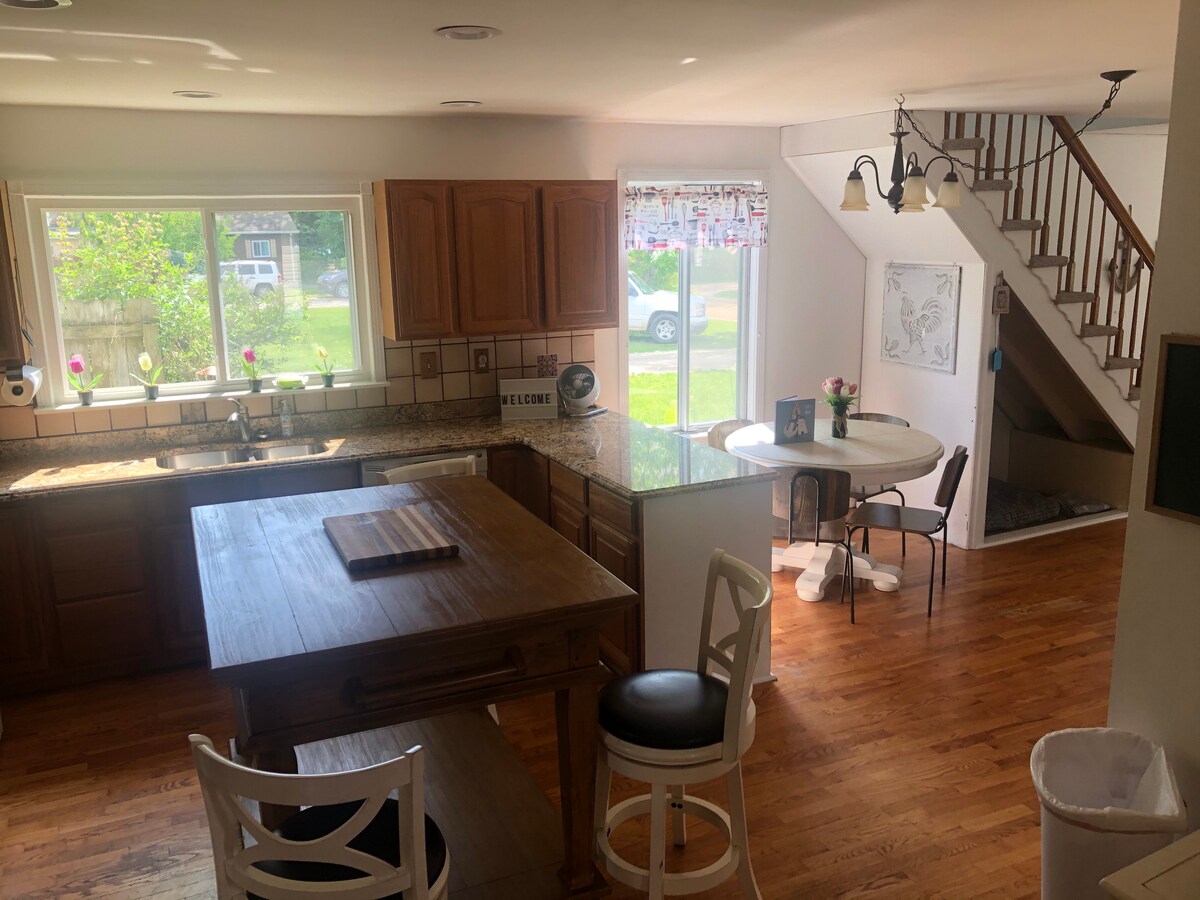 Nećete odsesti u bakinoj kolibi! Naša uredna i uredna seoska kuća puna je izmjena i prostora za cijelu porodicu, prijatelje i kućne ljubimce. Dvije privatne spavaće sobe i prostor za djecu u potkrovlju. Udaljeni smo samo nekoliko minuta hoda od jednog od 8 privatnih prilaza jezeru koje možete da koristite! Naš spoljni prostor je savršeno opremljen za odmor i ima POTPUNO NOVU HIDROMASAŽNU KADU! Uživajte u kafi na prednjoj terasi, roštiljajte na zadnjem dvorištu i sjedite oko vatre po mraku u ograđenom privatnom dvorištu.