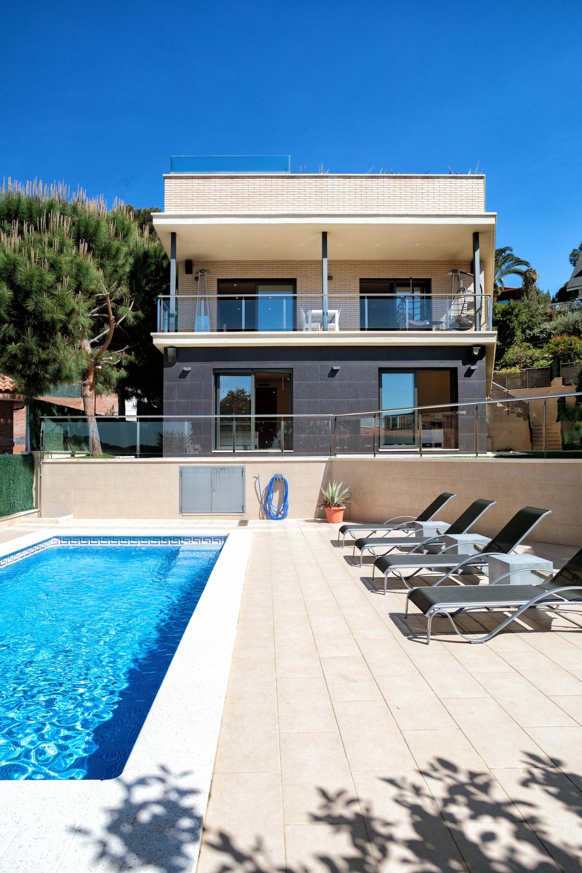 Luksuzna mala kuća koja se nalazi usred prirode samo 24 minuta od Barselone i 25 minuta od aerodroma T1 u Barseloni. Opremljen je bazenom sa temperaturom od 34 stepena i đakuzijem na otvorenom. Sastoji se od prostora za opuštanje u kom možete da uživate u miru i tišini. Zabranjeno je organizovati zabave i praviti buku noću, a odmor komšija se mora poštovati. Velika kuhinja i trpezarija sa pogledom na bazen. Dizajniran da napravi nekoliko nezaboravnih dana! Besplatan parking ispred kuće.