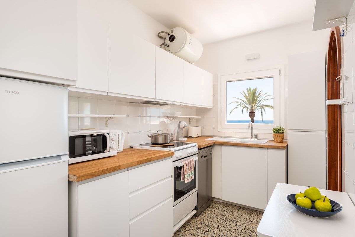 Arhitektonski uređen stan sa nenadmašnim pogledom na liticu Kalan Porter, Južna obala, Menorca. Zaista jedinstven objekat, koji je dizajnirao jedan od najpoznatijih arhitekata Menorke. Objekat sa visokokvalitetnom završnom obradom je savršen i svestran prostor, dnevna soba, kuhinja i terasa savršeno komuniciraju jedni s drugima kako bi se povećao pogled koji objekat ima, kontrast između tirkizne vode i narandžastih zalazaka sunca oduzima dah.