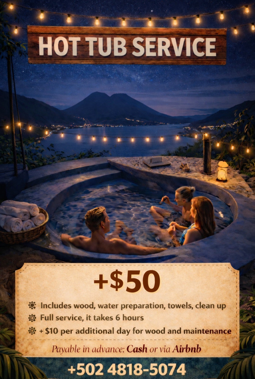 Enjoy a private infinity pool with stunning lake and volcano views, plus direct access to a swimmable beach right in front of the house. Unlike remote rentals, La Casa Bonita del Lago is in San Pedro La Laguna—the lake’s most welcoming town—with shops, cafés, restaurants and all services nearby. Located in a quiet, natural, upscale residential area, just 5–7 min by tuk-tuk to the main docks. 600 m² of gardens, outdoor fire pit, fiber optic Wi-Fi, workspace and free parking steps away.