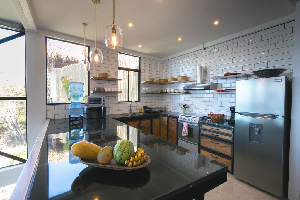 This brand new modern home is lakefront to Lake Atitlan Guatemala, the most beautiful lake in the world. Powered only by the sun, this green energy home has 3 bedrooms and 3.5 baths with a large hot tub, futbol (soccer) field, and modern dock. Come to relax and get away, and/or get some work done with highspeed Starlink internet with a powerful mesh wifi network. Residential area, yet only 5 min walk to restaurants/bars. The solar only heated hottub is not hot on rainy or cloudy days.